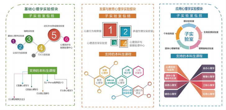 心理学实验中心为省级示范实验实训中心,有认知行为实验室、生物反馈实验室、儿童行为观察室等10余个实验室。