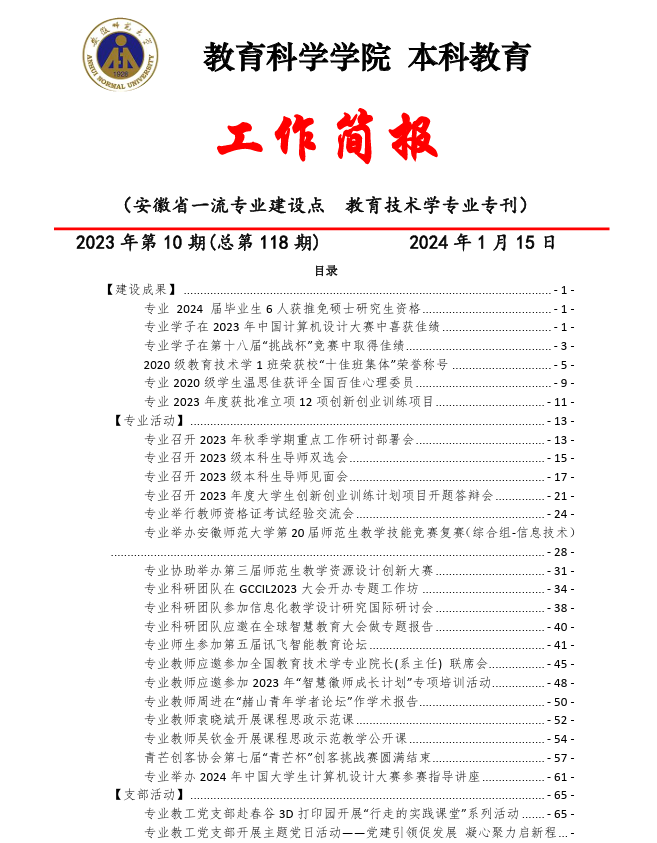 365英国上市官网本科教育工作简报(第118期)教育技术学专业专刊