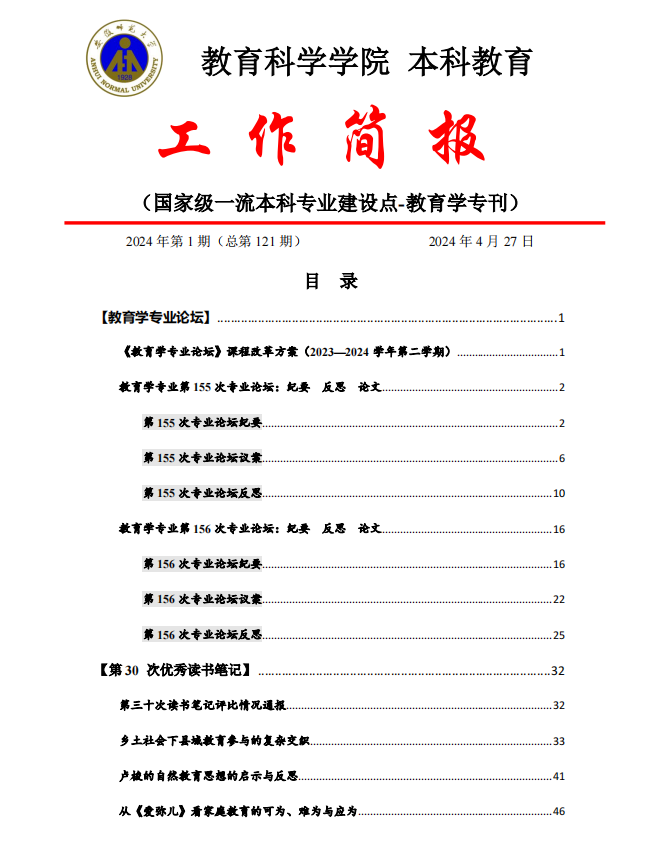 365英国上市官网本科教育工作简报(第121期)教育学专业专刊