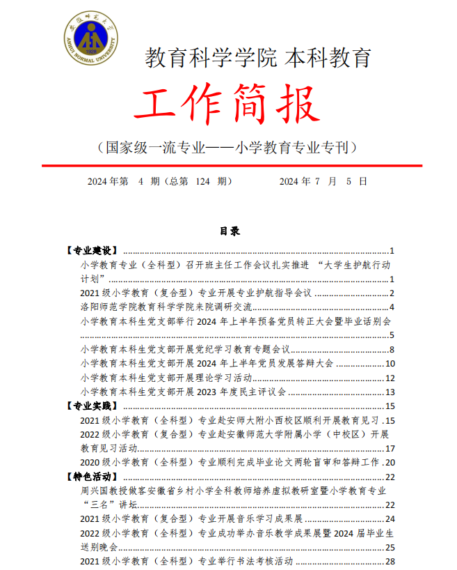 365英国上市官网本科教育工作简报(第124期)小学教育专业专刊