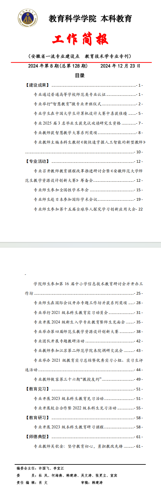 365英国上市官网本科教育工作简报(第128期)教育技术学专业专刊