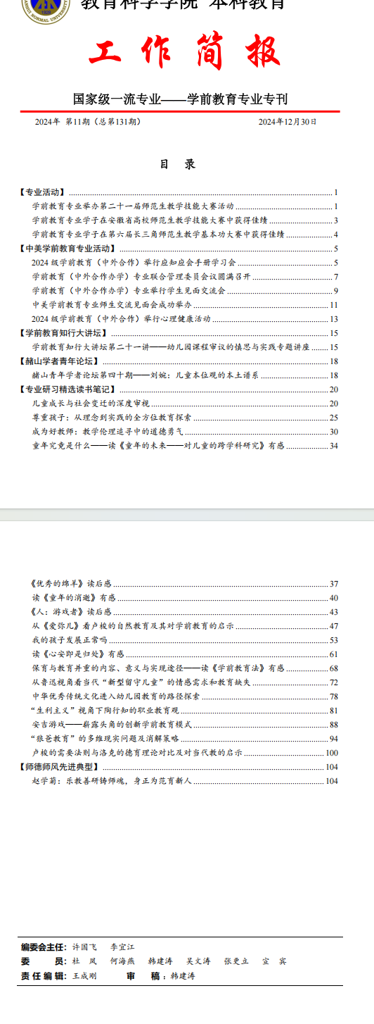 365英国上市官网本科教育工作简报(第131期)学前教育专业专刊