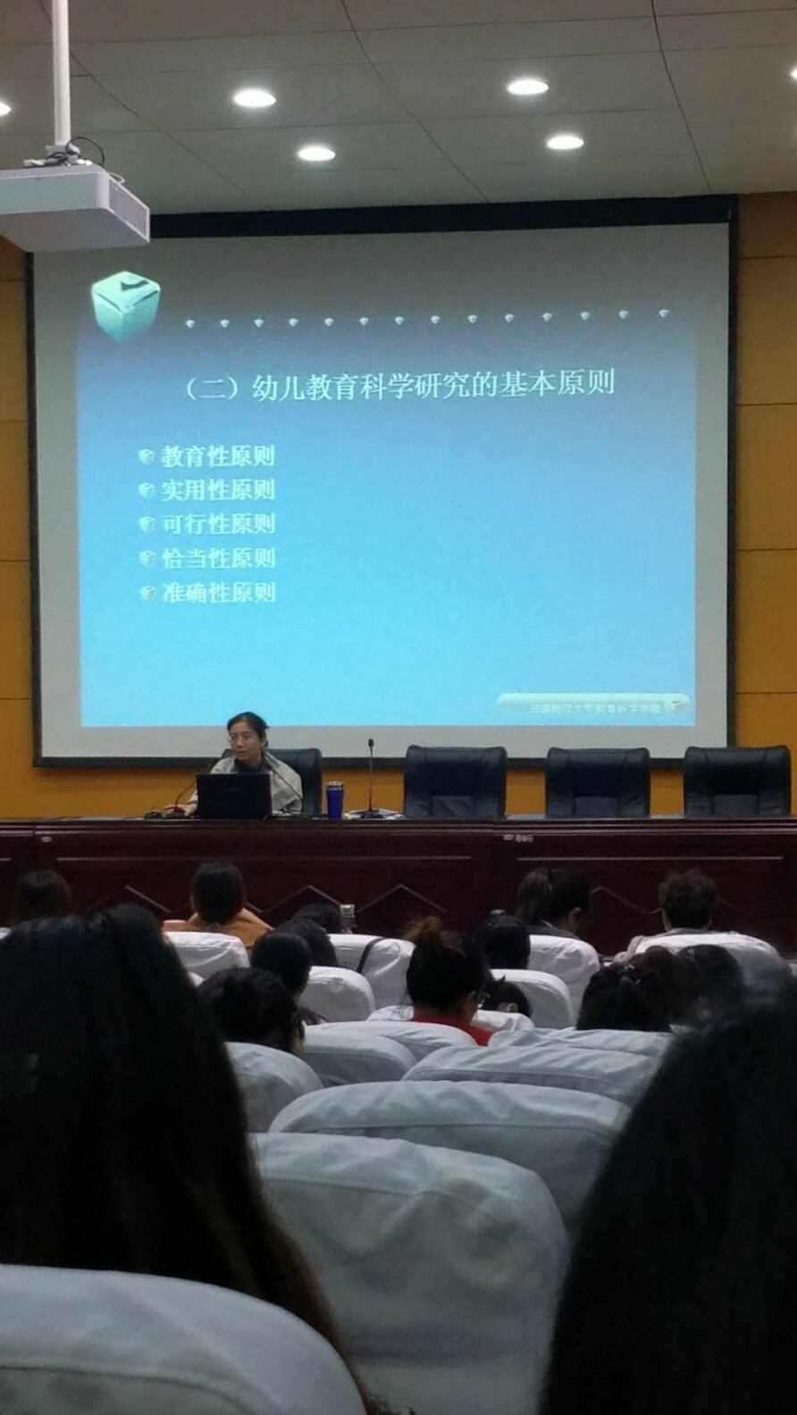 今天是20171017日,参加省培的第六天。上午,365英国上市官网吴玲教授给学员们带来题为《幼儿教育科研方法与论文写作》的讲座。讲座由六大部分组成,分别是幼儿教育科研方法概述、实例介绍、课题申报、关于幼教科研的一点思考、介绍几本科研方面的书籍和学前教育类杂志介绍及论文写作。