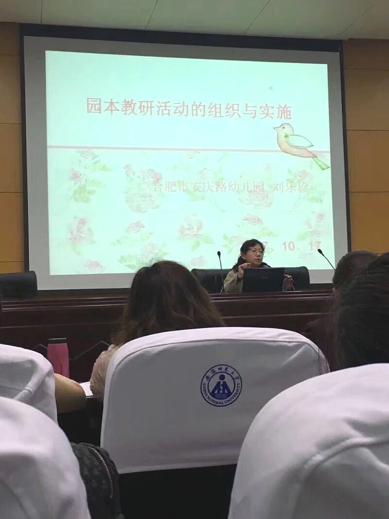 为了更好地突出幼儿教师终身学习的理念,安徽省教育厅、安徽师范大学教科院联合举办为期10天的幼儿园骨干教师访名校培训活动。20171016日是培训的第五天,今天由安徽师范大学张更立老师和安徽师范大学赵学菊老师分别带来讲座。