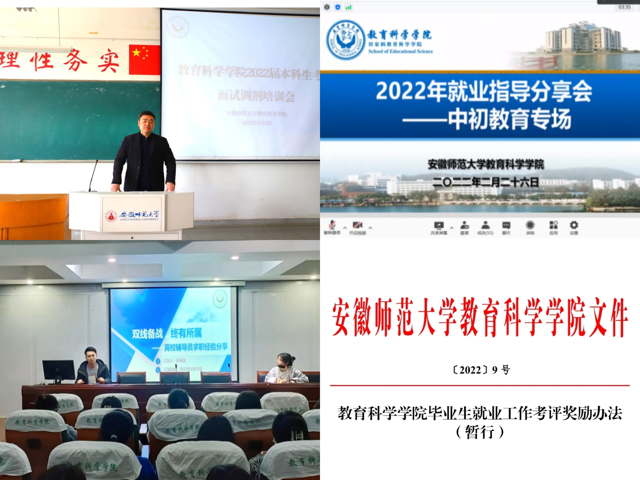 为提升毕业生就业能力,学院先后开展了“师范生教学技能培养”教育研习活动,各专业陆续召开教育实习动员大会、本科生考研面试调剂培训会,以及研究生“职”点迷津系列培训讲座。通过邀请学院领导、教授导师做好教育研习和实习工作、考研指导和服务工作,邀请学院优秀毕业生开展“中初教育专场”、“高校专场”、“高校辅导员专场”分享会总结就业经验,进一步拓宽同学们就业信息收集的途径,增强就业信心、提高就业质量。此外,学院制定《365英国上市官网毕业生就业工作考评奖励办法》,激发全院教职工在毕业生就业工作中的积极性和主动性,形成全员关心、支持和参与毕业生就业创业工作的良好氛围。