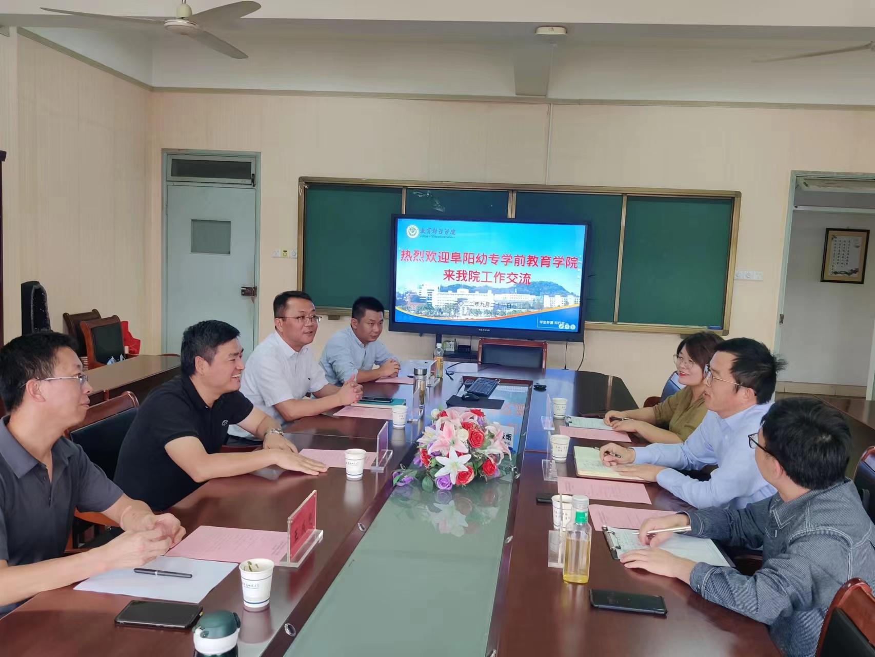 本网讯(教科院)9月21日,阜阳幼儿师范高等专科学校学前教育学院院长张军强、副院长李桂玲等一行来我院就学前教育专业二级认证相关工作事宜进行经验考察与交流,院长李宜江、副院长张更立、学前教育专业负责人王成刚以及王路曦等参加交流会,会议由张更立主持。