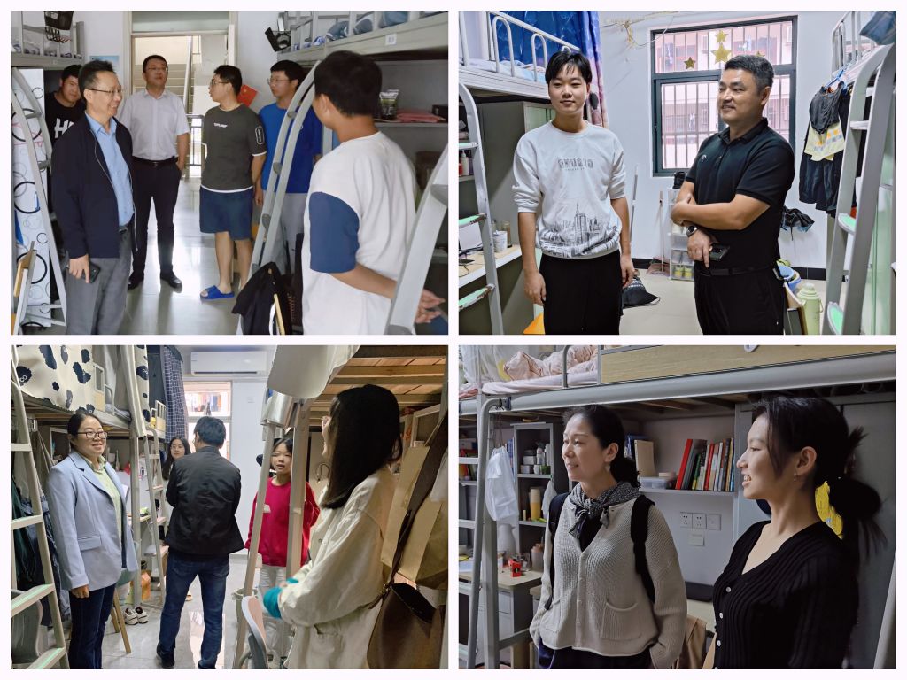 经过暑期的装修,原本老旧的宿舍焕然一新,由之前的上下铺、八人间、水泥地板装修为上床下桌、五至六人间、瓷砖地板。新宿舍宽敞明亮,宿舍整体环境明显改善。为进一步了解学生对新宿舍的住宿感受,以及新学期学习与生活上的适应情况,院党委书记方泓、院长李宜江、副书记杜凤及各年级辅导员于学期伊始走访学生宿舍,与大家亲切交谈。同学们纷纷对翻新后的宿舍条件点赞,表示将珍惜崭新的宿舍,保持整洁干净的住宿环境。