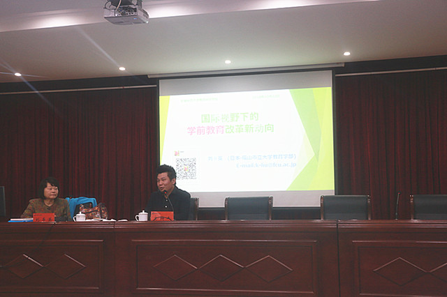 本网讯(教科院 文/王红 图/朱瑞)为了提升我院师生的学术视野,加强我院学前教育学科建设与新发展,10月22日上午,我院邀请了日本福山市立大学研究生院教育学研究科教授、南京师范大学兼职教授刘乡英来我院作了主题为“国际视野下的学前教育改革新动向”的学术报告,报告在赭山校区图书馆报告厅进行。教科院学前教育专业王路曦老师主持本次活动,学前教育专业负责人张更立教授出席,教育学相关专业本科生、研究生约200人到场聆听。