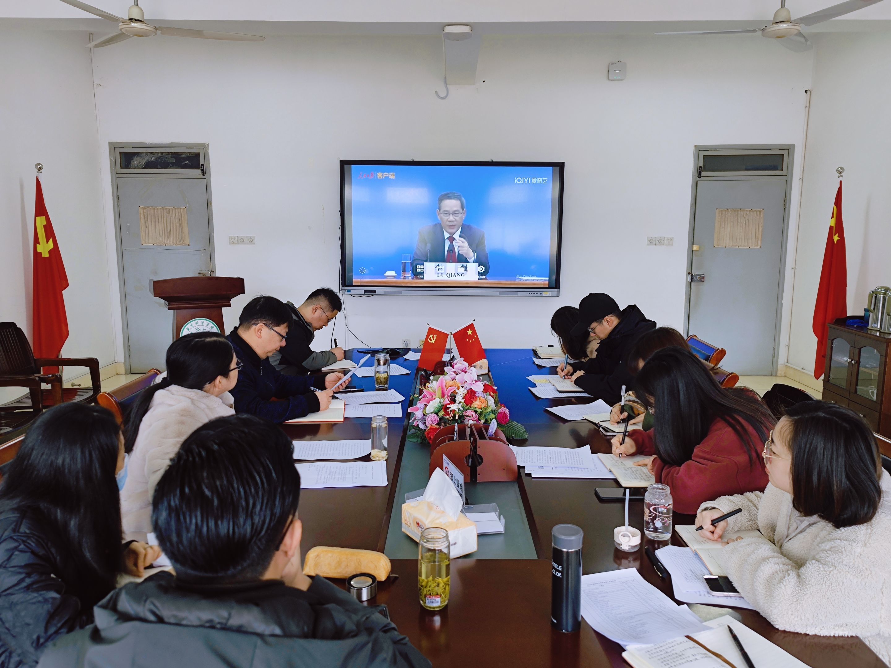 会上,全体参会人员共同视频学习《李强总理答记者问》,2019级辅导员莫大贡领学2023年全国两会政府工作报告要点,杜凤传达了学校“新春第一会”的会议精神。杜凤指出,全体辅导员要深入学习贯彻全国两会精神,认真领会和准确把握政府工作报告的丰富内涵,围绕学校工作要求,紧密结合学院学团工作,将学生日常思想教育管理服务做细做实。