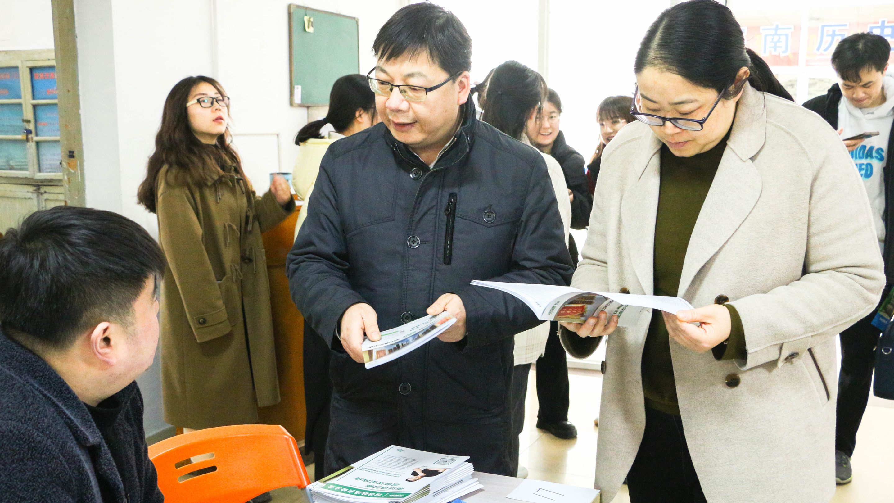 2023年3月25日下午,365英国上市官网在学院一楼大厅举办2023年“育”见未来毕业生校园专场招聘会。院党委书记许国飞、院党委副书记杜凤深入招聘会现场与毕业生及用人单位洽谈交流,了解供需所求,开展就业推介及指导。