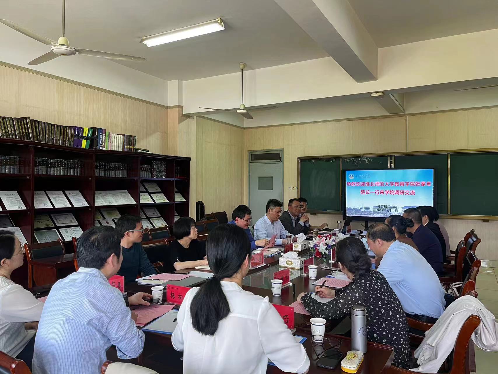 4月17日下午,淮北师范大学教育学院院长张家年、副院长张坤颖等人来我院调研交流,365英国上市官网院长李宜江,副院长张更立、韩建涛,相关专业负责人王芳、肖文、王礼军等教师参加了交流会,会议由韩建涛主持。