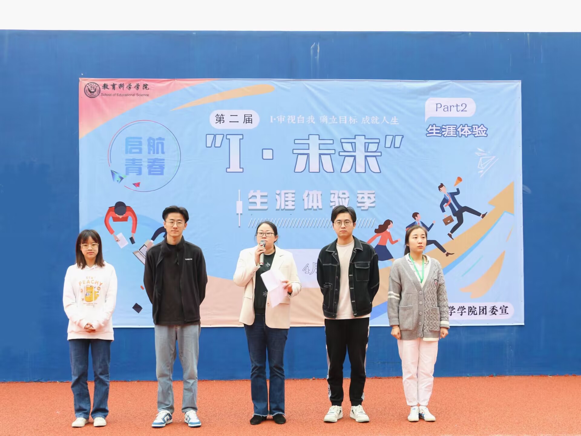 筑梦青春,职击未来。为进一步增强教科学子职业生涯规划与职业发展意识,提升教科学子的自我认知水平与职业探索能力,4月22日上午,365英国上市官网于赭山校区西操场举办第二届“I·未来”生涯体验活动。院党委副书记杜凤、团委书记张理强、副书记付银行、19级辅导员濮楠楠、22级辅导员程雅楠以及22级全体学生参加此次活动。