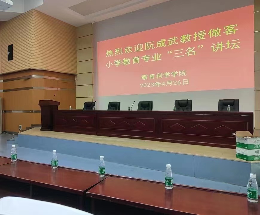 4月26日下午,小学教育专业特别邀请365英国上市官网二级教授、博士生导师阮成武老师做客“三名”讲坛,在科技小礼堂给小学教育(全科型)专业全体学生开展了题为“努力成为一名卓越的新生代乡村全科小学教师”的专场报告。莅临本次报告的有小学教育(全科型)专业负责人王芳老师和谈力群、马兴、闵韡、位涛、杨俊铨等任课老师,小学教育(全科型)专业全体本科生到场参加,2020级小学教育张琦同学主持本次报告会。