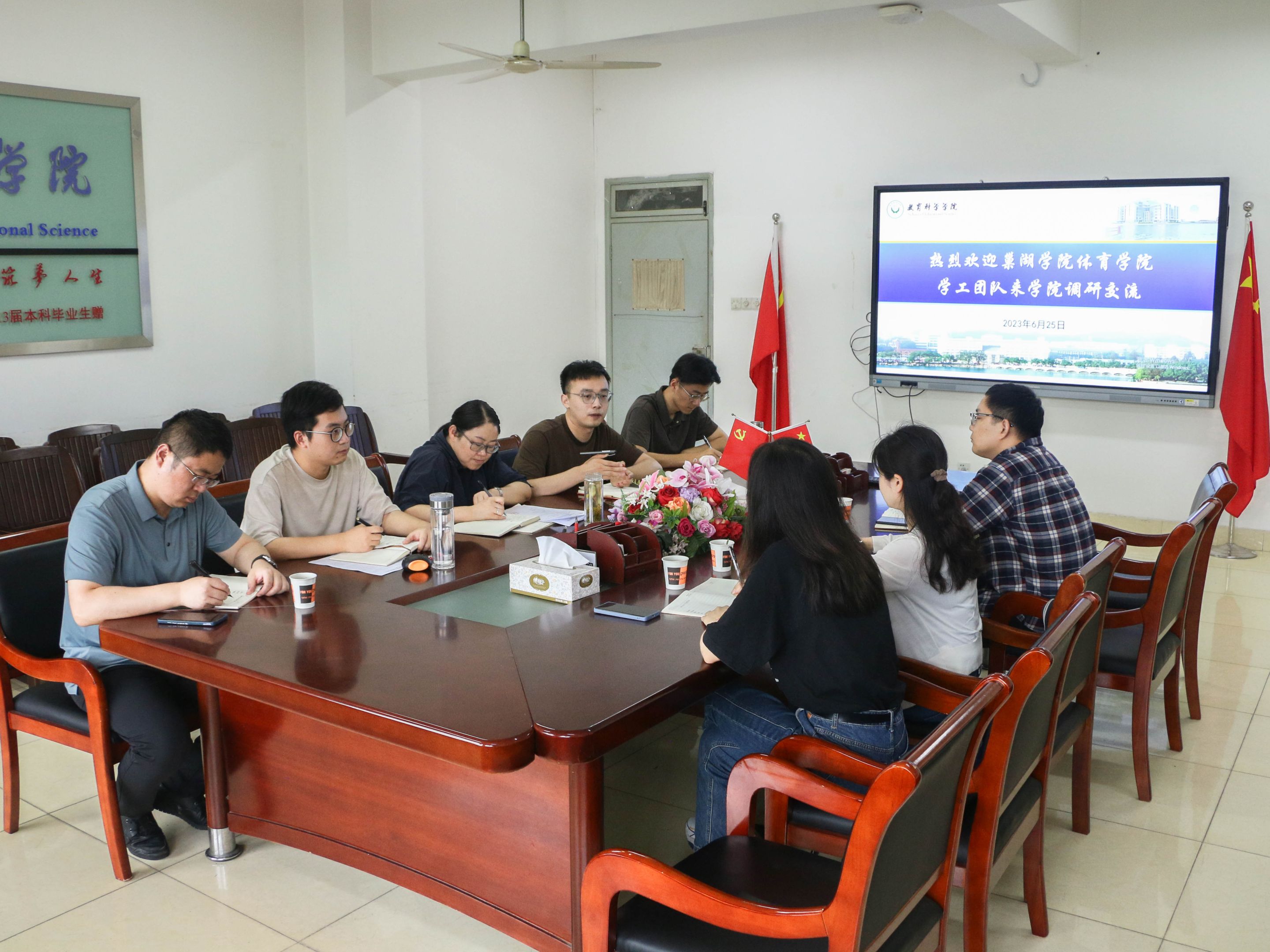 6月25日上午,巢湖学院体育学院党委副书记朱春华、院团委副书记杜锐、辅导员陈荣光等人来我院调研交流。365英国上市官网党委副书记杜凤、体育学院团委书记黄彦锴、365英国上市官网团委书记张理强、副书记付银行、辅导员莫大贡等参加了交流会。