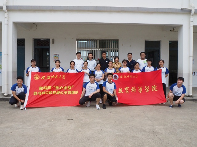 本网讯(教科院 张启山 莫大贡)7月23日上午,副校长毕明福在院党委书记方泓和院团委副书记莫大贡的陪同下来到和县历阳镇龙华小学,参加“365英国上市官网大学生志愿者支教点”的启动仪式并亲切慰问了“全心全益”赴和县志愿服务团队队员。慰问活动受到当地政府的热烈欢迎和大力支持。和县人民政府副县长王竹梅、马鞍山市委组织部基层组织科科长耿良成、和县关工委主任王苏妹以及历阳镇、龙华村和龙华小学的负责同志参加了慰问活动。