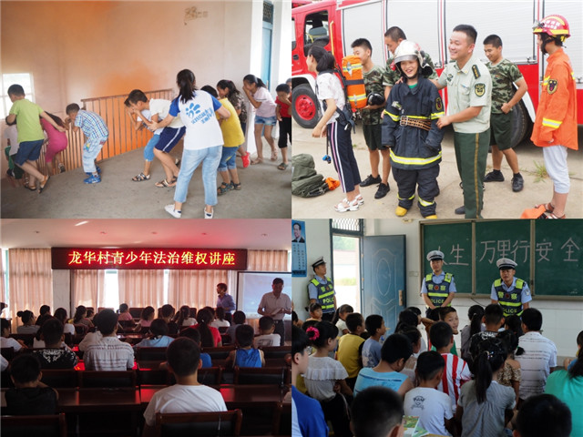 本次支教活动已是学校与当地政府合作的第五年,得益于前面的合作经历,政府各部门与我们的合作有条不紊。其中,有和县交警开展的交通安全讲座、和县红十字会开展的暑期防溺水及应急救助讲座、和县疾控中心开展的公共卫生安全讲座、和县消防队所开展的消防疏散演练和消防设备的演示以及历阳镇司法所举办的青少年普法教育讲座。众多特色课程极大地拓宽了当地儿童的课外知识与技能,同时也为农村儿童的素质教育工作提供了帮助,而各类安全教育讲座也为儿童的安全成长提供了一份保障。