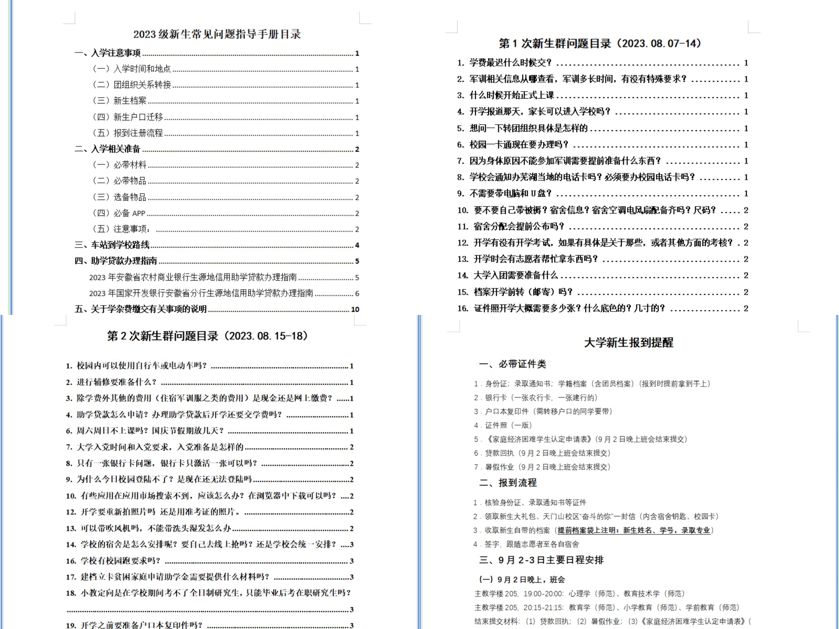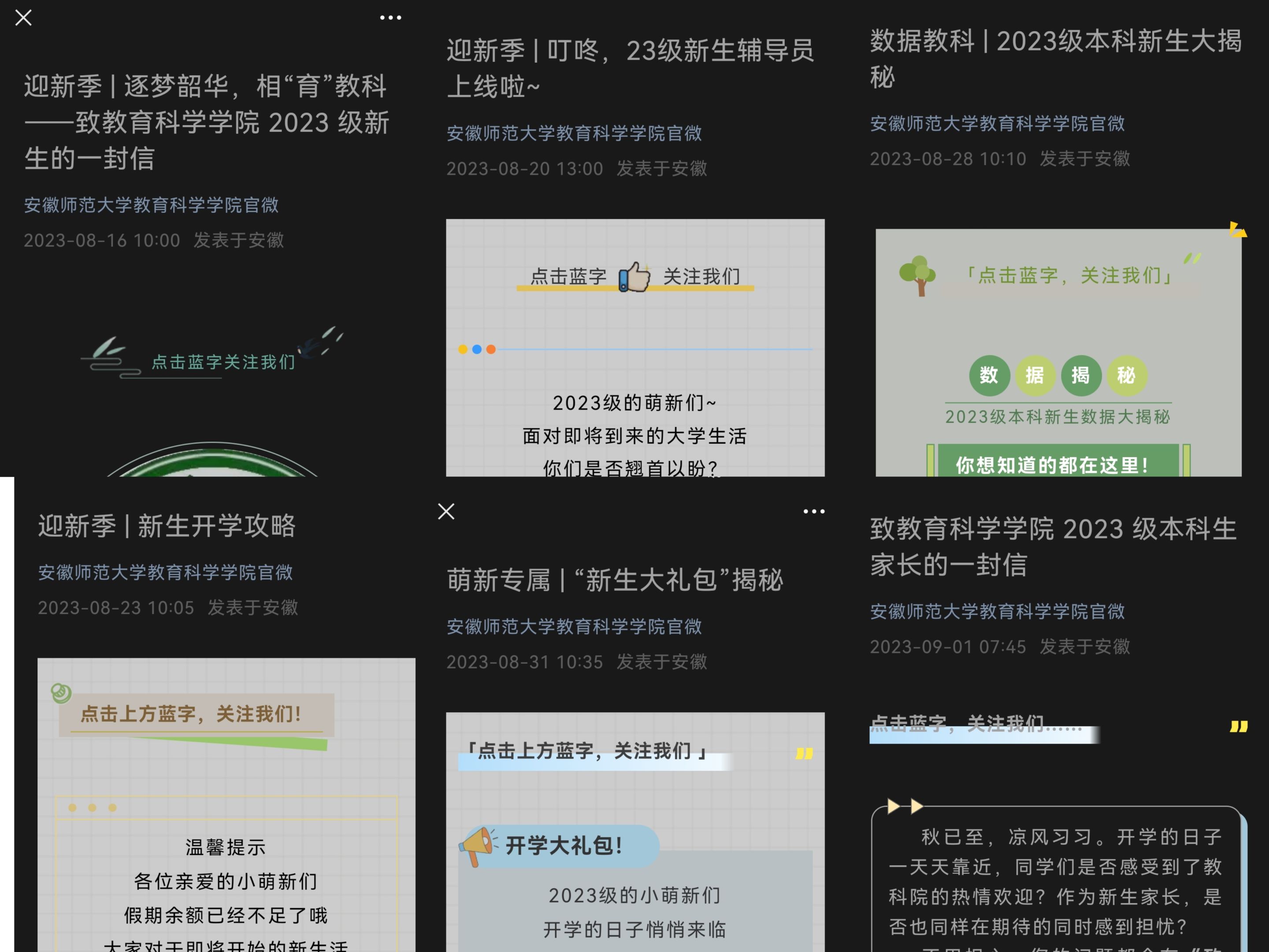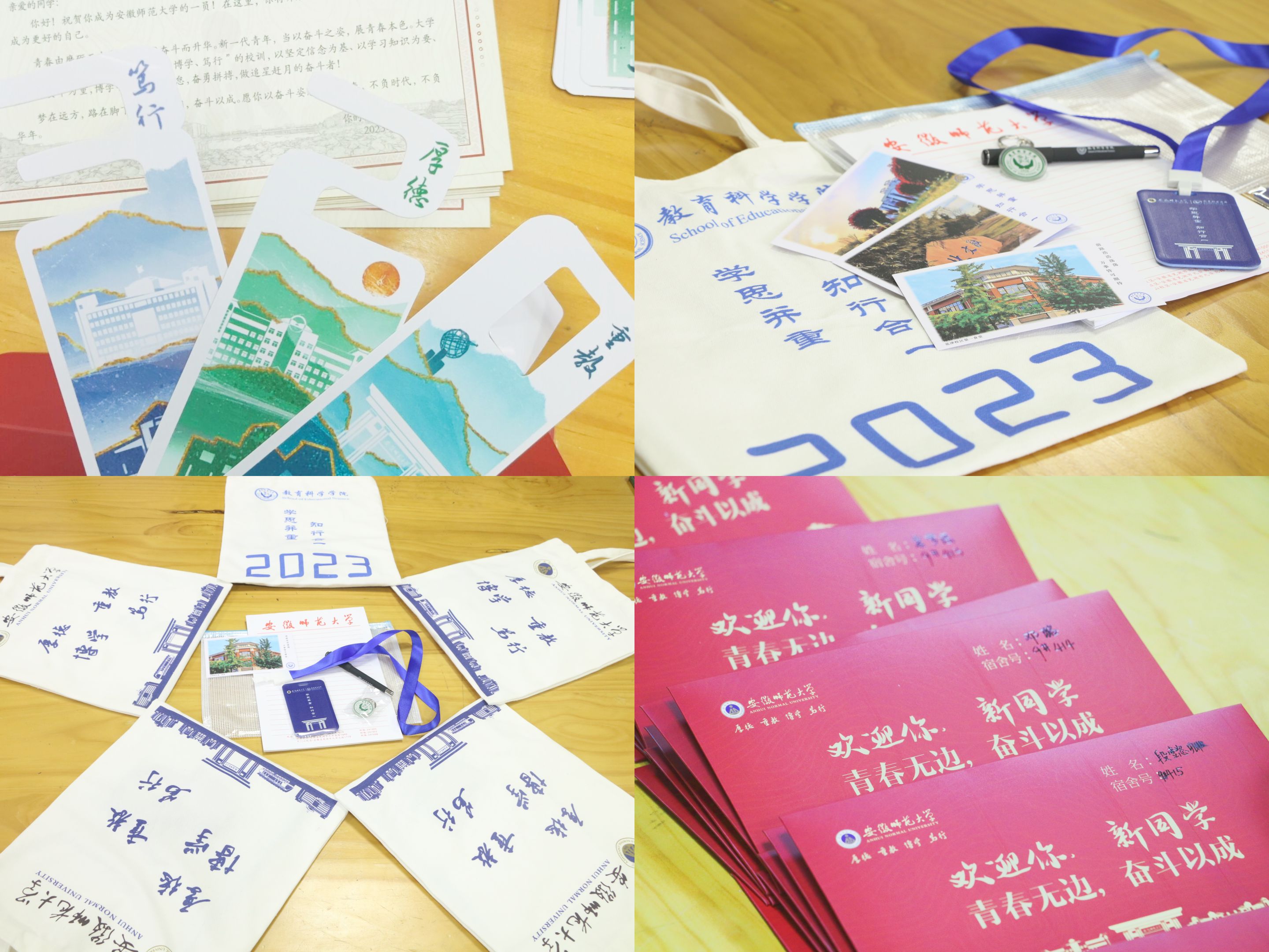 喜迎新起点,共待新未来。自筹备迎新工作以来,教科院通过官微、官Q等媒介多途径开展宣传活动,推出“给新生的一封信”“给家长的一封信”“新生数据大揭秘”等专题报道,助力学生熟悉校园。积极组建2023级新生群,选聘班导生,制定《教科院入学指南》《入学答疑汇编》,发挥朋辈自助精神。用心设计“新生大礼包”,师大元素搭配学院特色,美观与实用结合,让新生感受浓浓教科情。紧贴新生需求,组织线上朋辈交流会,邀请高年级学长学姐围绕大学学业、第二课堂、班级管理展开分享,为新生适应提前赋能。