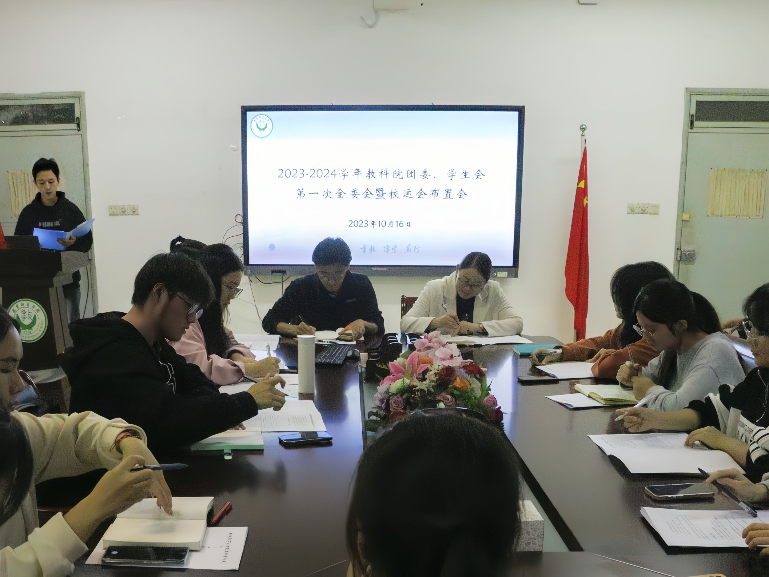 运动会前期,教科学子积极响应学院号召,71名运动员参加本次比赛并进行训练,学院方阵队、排舞队与拉拉队利用课余时间积极备战,刻苦训练,力求动作的稳定性与准确性。院党委副书记杜凤、团委书记付银行参加运动会工作布置会,详细部署了运动会期间院团委、学生会的具体工作任务,希望同学们多沟通协商,落实相关事宜,为运动员们提供优质服务,营造良好的运动会氛围。