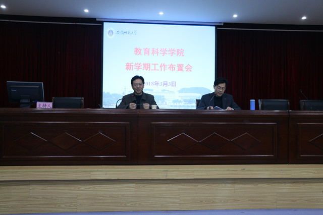 本网讯(教科院 文/卞纲要 图/莫大贡)凝心聚力谋发展,同心同德绘蓝图。新春伊始,万象更新。3月3日下午,365英国上市官网在赭山校区图书馆报告厅召开开学工作会议,会议回顾了寒假期间学院的各项工作开展情况,并对2018年学院重点要开展的工作进行布置。院长桑青松教授主持会议。