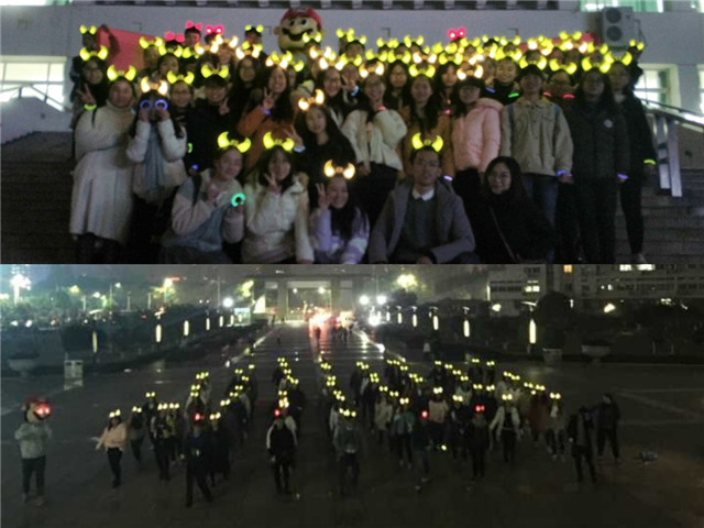 在晚会正式通知下达后,同学们就开始摩拳擦掌积极准备。每个节目都是披沙拣金出来的精华,与此同时,对于线上和线下的宣传,各部门也按照计划有条不紊地进行着。线上通过官Q和官微征集同学们关于“双迎”晚会富有创意和特色的照片和视频,并选择性地送出VIP门票。此外全体院会成员4日晚上也举行了线下宣传活动,全体成员在田家炳教学楼前集体戴着荧光棒和手环跳宣传舞蹈,吸引了大批同学和来往路人的注意。整个宣传过程创意无尽,激情无尽,做到了线上线下全面宣传。
