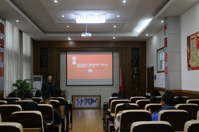 随后,莫大贡给在座的入团积极分子们上了一场别开生面的团史团章课程。他分别从共青团的标志、共青团的历史以及团章学习三个方面进行讲述。莫大贡细致的讲述了团旗、团徽、团歌以及团证的意义,在讲述团史中更是举例说明。同时,他还向同学们介绍了团章的相关内容,如团员的权利、团的基层组织、团的组织制度等等。在讲述的过程中,他提出相关问题引发同学们积极回答问题,如“共青团是什么时候成立的”“历史上有哪些名称”、“共青团现在已经召开几次代表大会”等等,入团积极分子们积极回答问题,使得现场气氛活跃起来,学习团章更加认真。