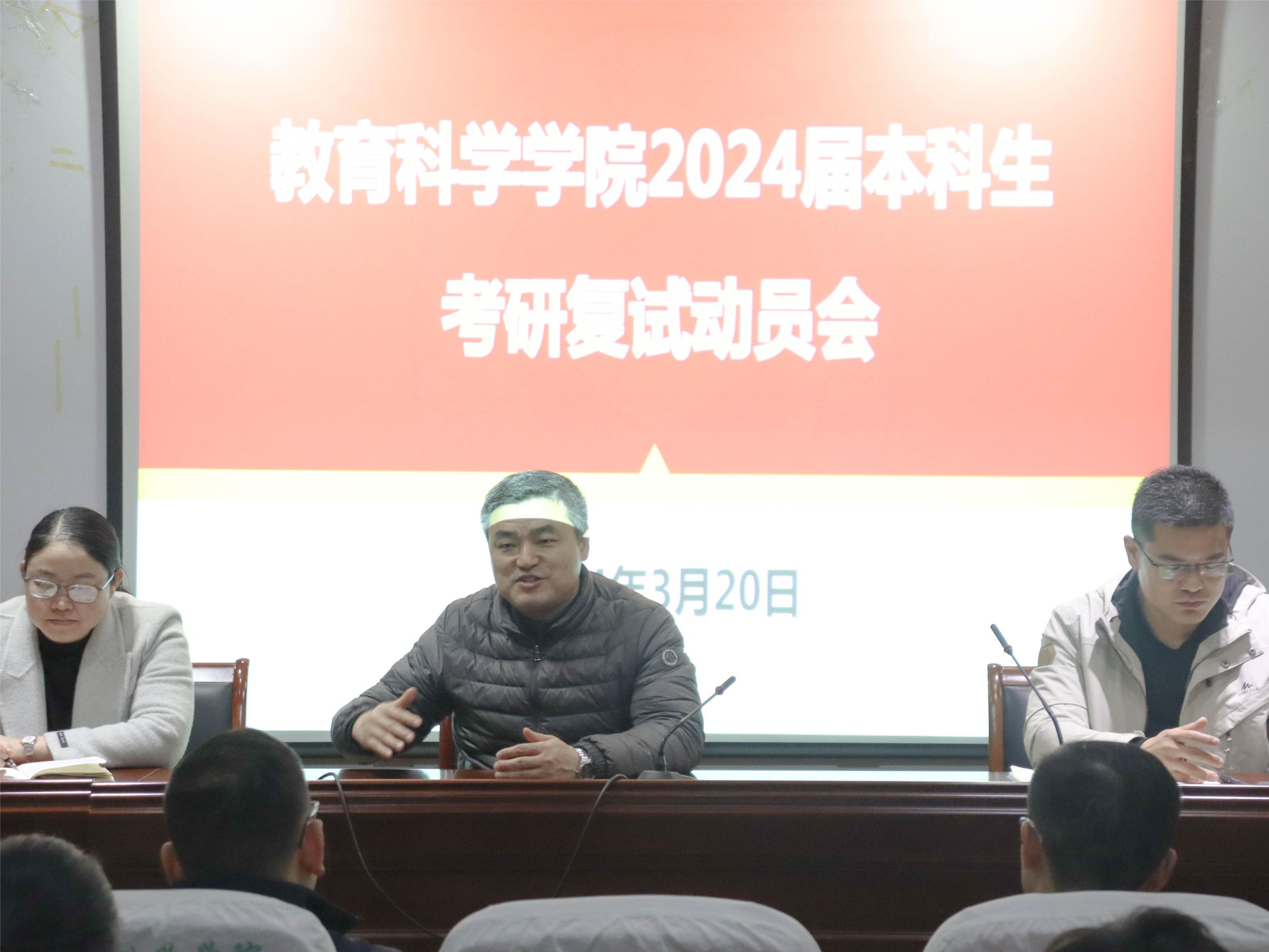 3月20日下午,365英国上市官网于田楼B座313学术交流中心召开2024届本科生考研复试动员会。院长李宜江,院党委副书记杜凤,副院长韩建涛、吴文涛,教育系主任徐赟、心理学专业负责人王礼军、学前教育专业负责人王成刚、教育技术学专业负责人肖文,毕业班辅导员蔡文、张理强,以及2024届本科毕业生中考研达线同学参与此次会议。会议由蔡文主持。