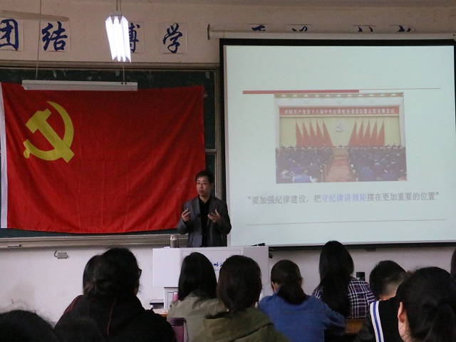 张教授以“守纪律、讲规矩”加强纪律建设为切入点,首先介绍了党的十八大以来党员、干部学习活动情况,例举了我国历史上我党惩处过的不讲政治、不重规矩、不做表率的党员,督促在场党员以史为鉴,不忘初心。