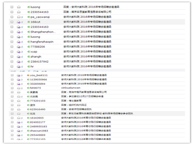 期间,校学生处处长台启权、院党委书记刘晓宇、院长桑青松、副院长聂竹明亲临现场,对招聘工作进行了现场指导,他们一方面为学生释疑解惑,指导学生主动地把握就业机会,积极向用人单位展示优秀的自我;另一方面积极与用人单位沟通,了解用人单位的岗位需求,听取用人单位意见和建议,并感谢用人单位长期以来对我校毕业生的就业工作的关心与支持。学院党委副书记张如华老师更是全程参与了此次招聘会,她结合用人单位的需求和该院毕业生的实际情况,有针对性地给学生做引荐工作,期待学生能找到称心如意的工作。招聘会期间,学院还向用人单位发放了《校园招聘会调查问卷》,通过调查本场招聘会基本情况,了解企事业单位对毕业生的素质需求,收集他们对学校人才培养和就业工作的建议,以便采取针对措施,更好地促进毕业生的充分就业和更高质量的就业。通过问卷的整理,发现本次招聘会获得了用人单位对我校毕业生整体素质的积极好评,也为毕业生走向就业市场增添了极大的自信心和就业动力。阜阳超训教育集团的负责人孙超训先生说他已经是第三次来参加教科院的专场招聘会了,他对学院学生的素质以及学院领导老师对招聘会的布置、服务给予了高度赞扬和肯定。专场招聘会后,部分用人单位还趁热打铁进行了专场宣讲和笔试面试工作。