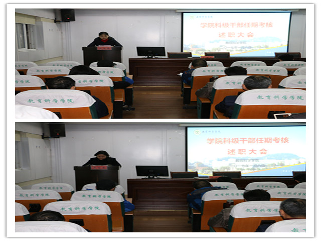 随后进行的科级干部任期考核述职中学院六名科级人员就自己2013年1月至今履行岗位职责情况客观真实地向学院每位教师进行了述职。学院教学秘书张景慧表示自己虽然临近退休,但一直恪守岗位职责,兢兢业业,不求功名利禄,但求为教师上好课,学生读好书做好一切服务。刘晓宇在总结中充分肯定了学院科级干部在学院发展中的主要作用,他指出科级干部是保证学院工作正常运转的中枢神经,工作在学院一线,涌现了很多感人的事迹,但仍要强化服务意识,继续为教师工作、学生发展做好服务工作,助力学院不断发展。