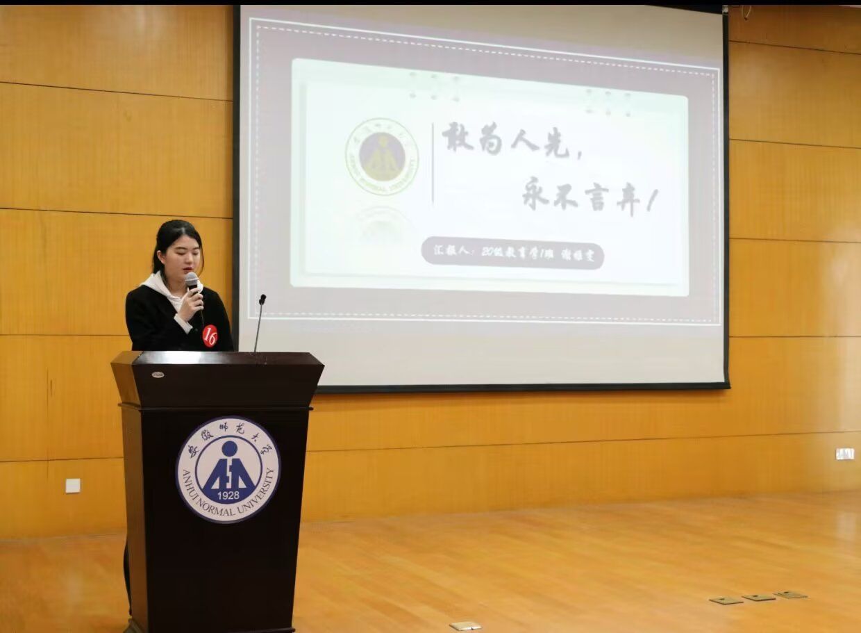 作为教育学人,她始终保持对教育理论、现象、问题的敏锐力。无论是在阅读教育经典名著过程中,还是在面对当下前沿的教育现象与问题过程中存在不解、怀疑、质疑等,她总是把“微小”的事情不断“放大”,尝试深入思考与钻研,积极与专业教师交流,同时勤于思考和写作,认真记录每一次思考,把它们当成锻炼写作能力的宝贵机会,撰写读书笔记、调查报告、课程论文等,个人论文集累计超过30万字,获教育学专业第25、26、28、29次读书笔记评比一等奖。在师大的四年,她还始终坚持“扎根教育实践一线”,深入六安市列宁小学、金寨第一中学;芜湖市安师大附小、利民路小学;滁州市第四小学、第二实验小学等5个市近20所学校开展教育调查。无论是作为研究者去旁观教育的开展,还是作为教育者去开展教育实践,在深入教育一线的过程中,她都积极敏锐地发现教育现象与教育问题,并对其进行批判性思考,在实践中不断提升教育科研能力。