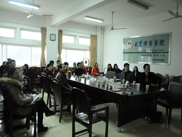 本讯网(教科院 图/张宇婷 文/徐莹)11月30日下午,为加强中外合作办学,提高教学质量,培养符合社会发展需要的复合型国际化人才,美国布莱诺大学老师Rudi Kiefer与学院老师在三楼会议室就中美高校教师课堂教学差异问题展开交流讨论。学院院长桑青松、副院长李宜江、副院长何海燕,学前中美、教育技术、教育学专业部分老师及研究生参加了此次会议,会议由院长桑青松主持。