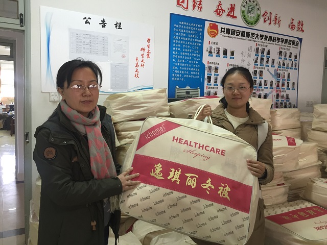 暖学暖冬,创新资助方式。本学期以来,学院将“暖学”与“暖冬”工作作为学生资助工作的重中之重来抓。通过辅导员例会的部署、各年级前期摸底,精准、快捷的缓解家庭贫困学生的生活问题。2016级小学教育是我院今新招的定向招生的专业,学生主要来源于贫困地区和农村家庭。“暖学”行动在保障公平的前提下,重点倾斜此类贫困学生。“暖冬”行动继承了我院实物发放的传统,统一采购优质品牌暖绒冬被,全员覆盖,在寒冷的冬季为贫困生送去贴心的温暖。