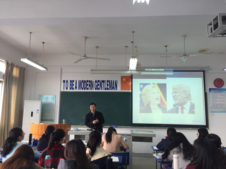 此次公开课的教学内容是“情绪、情感”,罗老师通过一些具体例子,深入浅出地讲解了“情绪、情感的概念和成分”、“情绪、情感两者的区别与联系”,重点讲解了“情绪的外部表现——表情”。整个教学过程逻辑严密、脉络清晰。罗老师善于将枯燥深奥的心理学理论通过形象生动的例子以启发学生思考,授课亦庄亦谐。讲到表情时,罗老师亲身示范做表情、哼歌曲旋律、模仿著名节目主持人的解说等,惟妙惟肖,令人印象深刻。罗老师授课所举例子,紧贴时事,信手拈来,如模仿刚刚当选的美国新一届总统特朗普的表情,讲到刚刚过去的双11购物狂欢节等。其循循善诱、幽默诙谐的教学风格营造了轻松愉悦的课堂氛围,起到良好的教学效果。