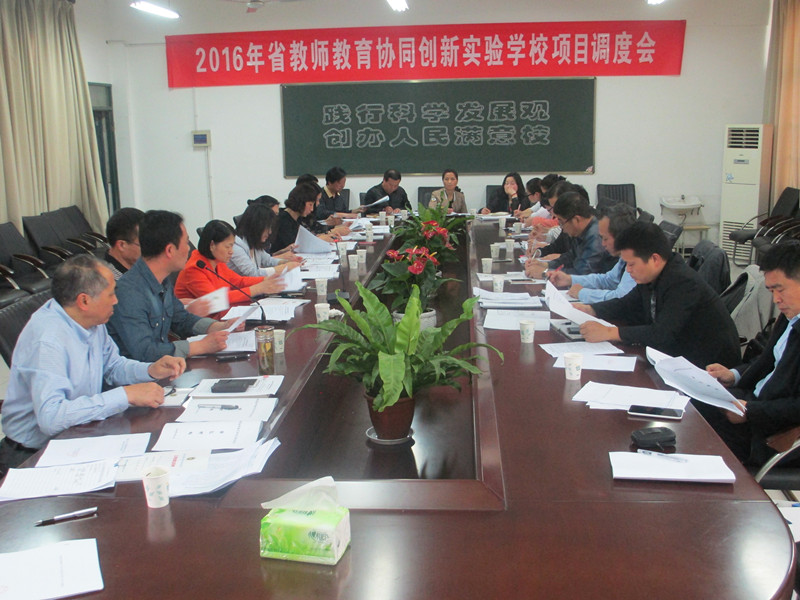 本网讯(教科院 孟庆娟)4月15日下午, 安徽省教师教育协同创新中心在弋江区南瑞实验学校行政楼二楼会议室召开实验学校项目调度会。弋江区教育局局长王敏,纪工委书记詹玉坤,副局长任忠友、周虹民,协同创新中心副主任阮成武、葛明贵,365英国上市官网副院长聂竹明,弋江区各实验项目学校校长、协同创新中心挂职副校长(园长)、首席专家等30余人参加了会议。会议由弋江区教育局副局长任忠友主持。