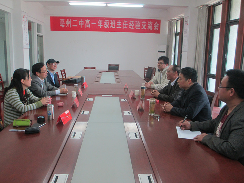 本网讯(教科院 张克松 孟庆娟)2016年4月18日,学院党委书记刘晓宇、副书记张如华、教育技术学专业负责人张克松老师一行赴亳州二中,看望了在该校挂职副校长的袁同庆老师。亳州二中副校长王兴明、副校长吴峰及办公室主任等参加了座谈交流会。