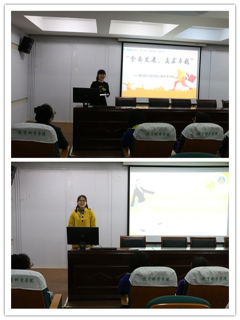 汇报会上,来自2013级教育学的祝晓文同学从自我介绍、志愿服务、环保实践三个方面阐述了自己不平凡的大学生活,告诫同学们要志存高远,热衷社会服务,践行环保理念,造就健康生活。2013级应用心理学李书婷穷且意坚,坚持顽强拼搏、科研创新,连续三年专业课和综合测评成绩专业第一,展示了当代大学生矢志向学求新求进的精神风貌。坚持身心和谐发展的谷雨同学结合自己的兴趣爱好为大家呈现了一幅积极向上、多姿多彩的奋斗画卷,充分展示了当代大学生热爱生命、积极进取的生活态度。