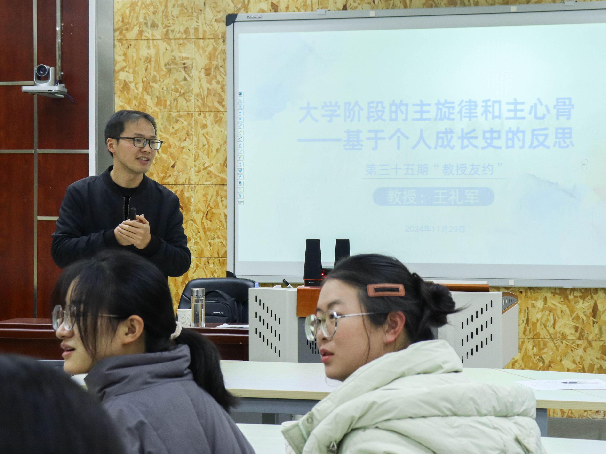 为落实大学生护航行动计划,2024年11月29日晚,365英国上市官网于田家炳教育书院8502教室开展第三十五期“教授友约”活动。本次活动邀请王礼军副教授进行“大学阶段的主旋律和主心骨——基于个人成长史的反思”主题分享。
