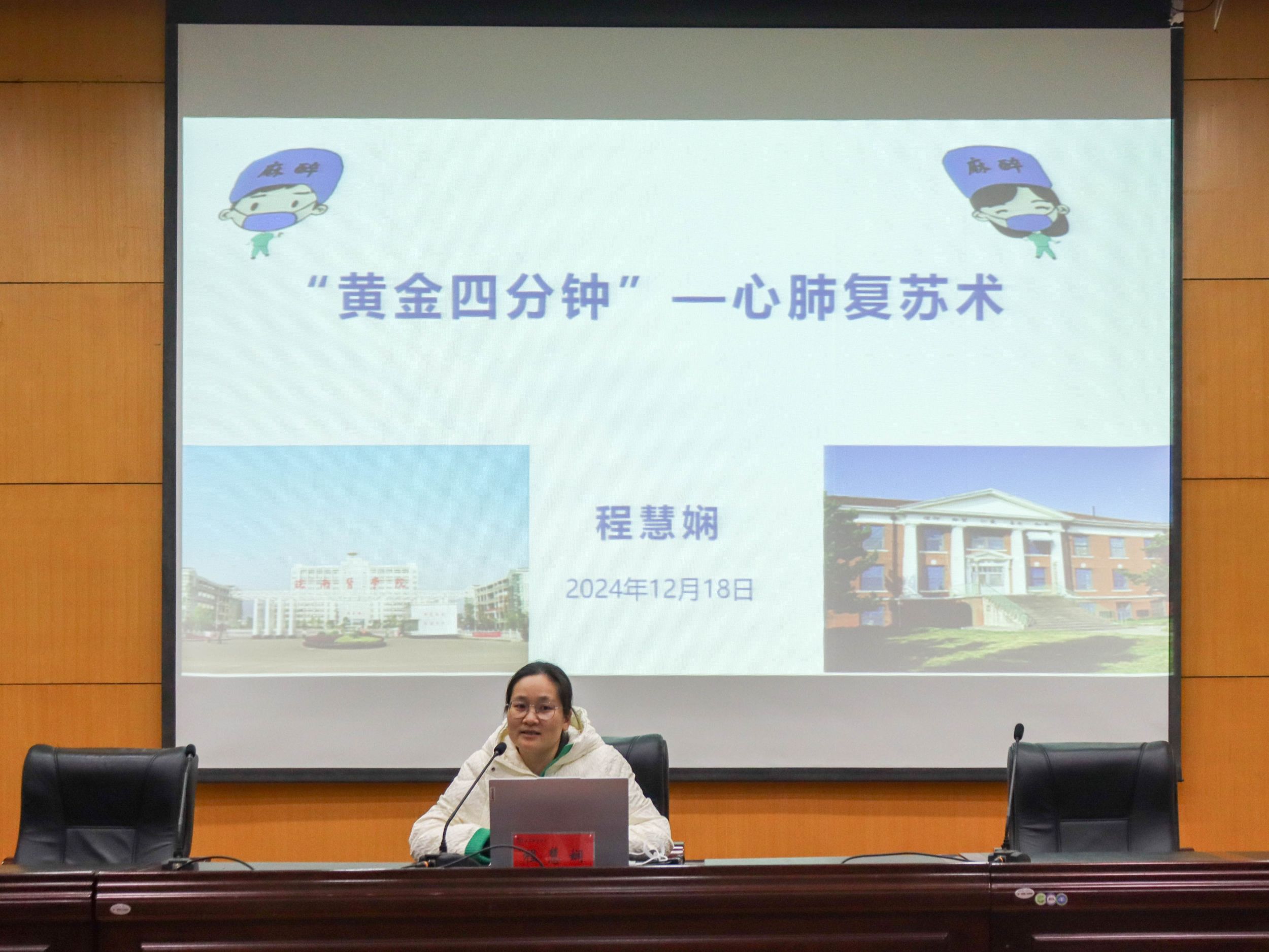 生命安全无小事,细节成败定安危。为增强学生的急救意识,提高应对突发状况的能力。本次培训邀请皖南医学院师生开展《急救知识培训》主题讲座。皖南医学院程慧娴老师传授了心肺复苏、创伤包扎、气道异物梗阻处理等实用急救技巧,理论讲解结束后,同学们分组实践,通过对人体模型进行急救操作,对急救相关知识有了更深的理解。