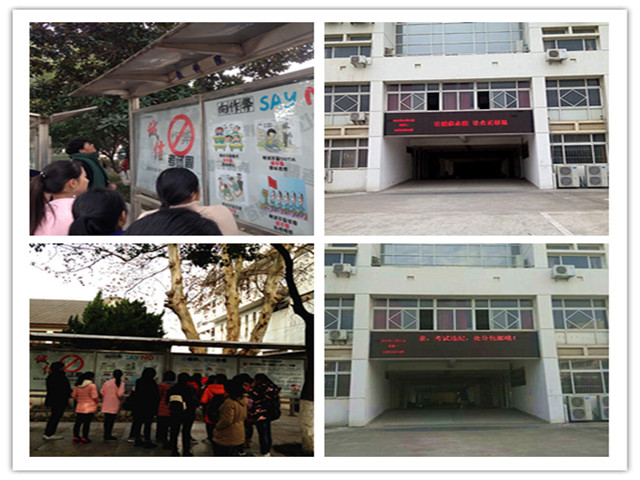 教科院为号召全校师生诚信考试,制作了以“严肃考风考纪,共创良好学风”为主题的宣传展板,展出当天吸引了不少同学驻足观看。在教科院楼下的电子显示屏也播出了关于诚信考试有关的标语,有些严谨规范,有些妙趣横生却意味深长。在欣赏展板、品味标语之余,同学们更加体会到了诚信考试的重要性。随着展板的展出,本次诚信考试的教育宣传活动也画下了句号,但是诚信之根却在同学们心中越扎越深。