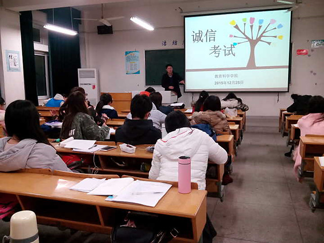 承诺书是诚信的标尺,诚信班会便是心灵的鸡汤。为进一步强化教育效果, 2015级本科生辅导员莫大贡老师面向大一新生召开诚信考试主题班会。班会上,莫老师带领学生重新学习《安徽师范大学考场规则》,着重强调了学校对考试违纪或作弊学生的处理办法。莫老师用生动形象的语言使得诚信考试观念深入人心。班会结束时,再次向同学们强调诚信考试的重要性。此次班会,让同学们明白诚信是一种做人的品质,不光是在考试中,在生活的各方面都需要以诚待人。