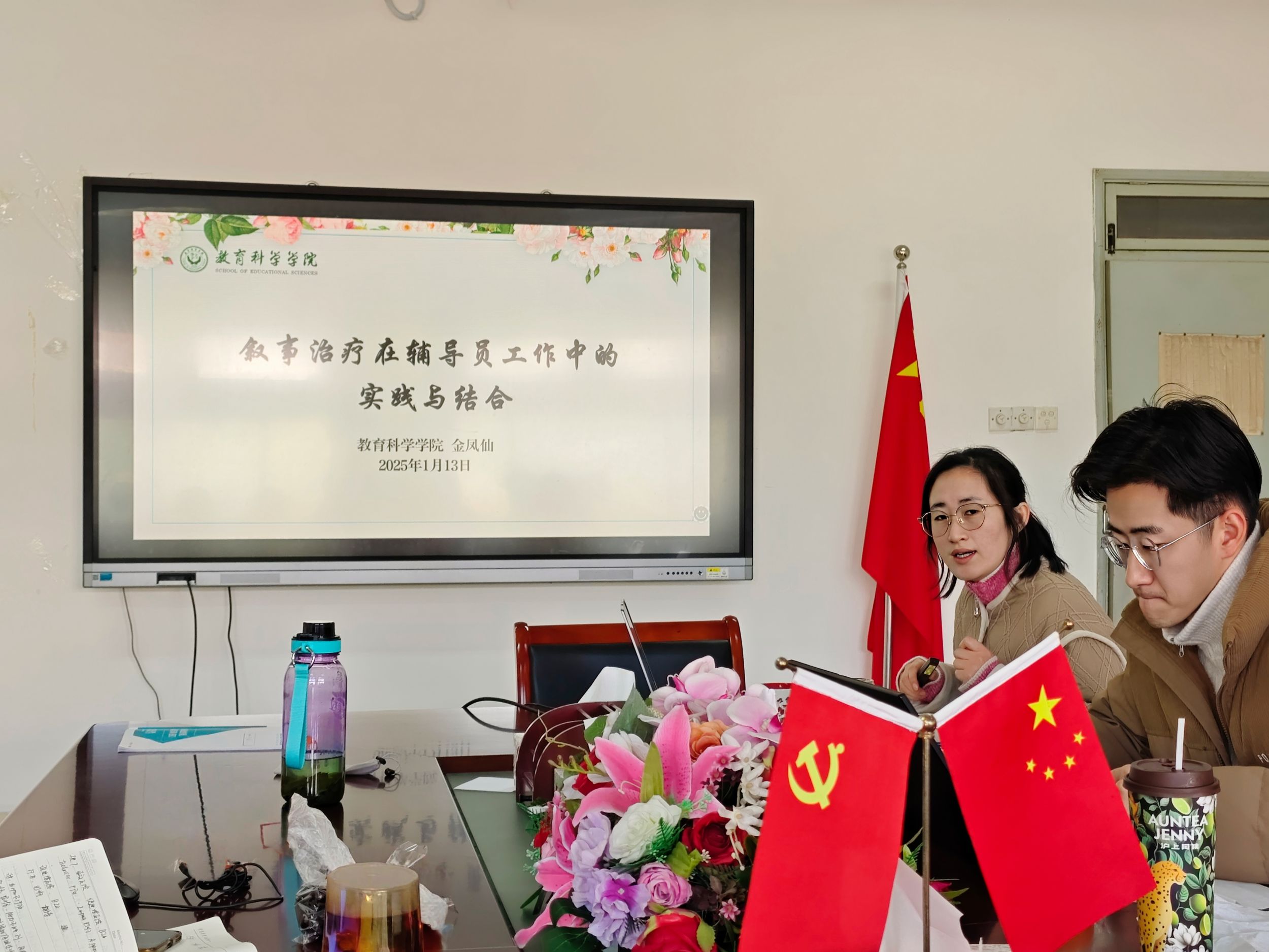 辅导员金凤仙介绍了叙事治疗在辅导员工作中的实践与结合。从理论背景、常见技术以及访谈历程三个方面,通过生动的案例分析具体介绍了叙事治疗的技术应用,着力提升辅导员谈心谈话能力。
