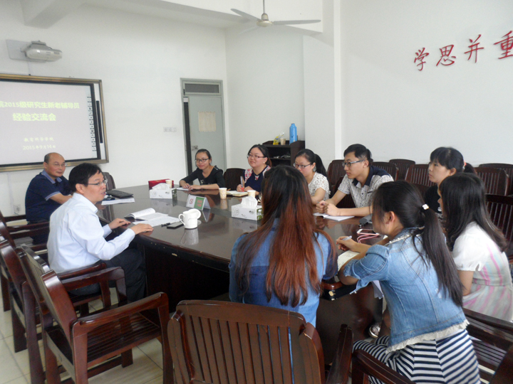 本网讯 (童张梦子/文 苌云莉/图) 9月14日上午10点,我院在三楼会议室召开研究生兼职辅导员经验交流会。院党委书记刘晓宇,研办秘书过婴宝及研究生兼职辅导员参加会议,会议由过婴宝主持。