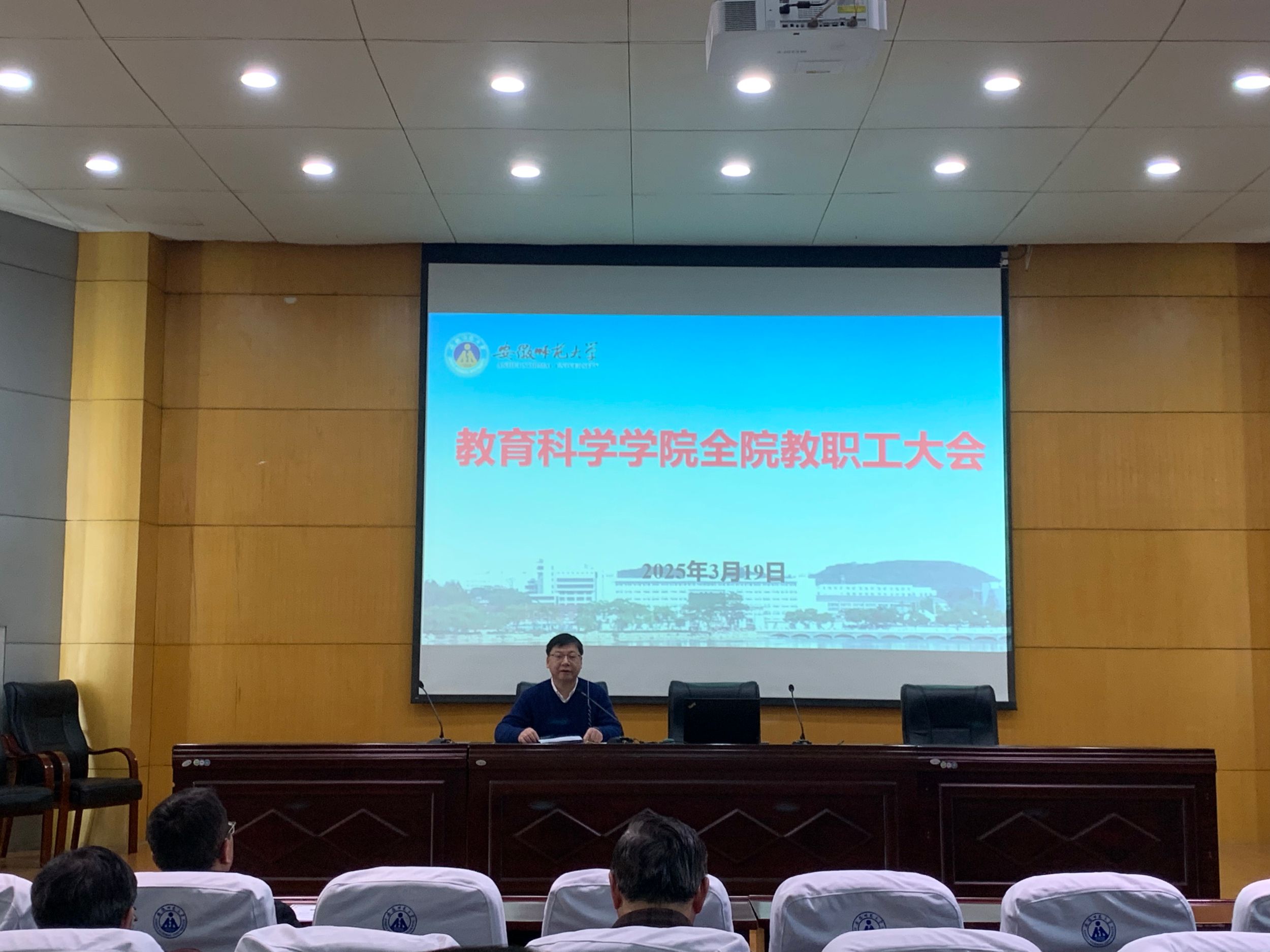 许国飞传达学习2025年全国教育工作会议精神和学校全面从严治党及年度工作布置会精神。通报了学院2025年党政重点工作。