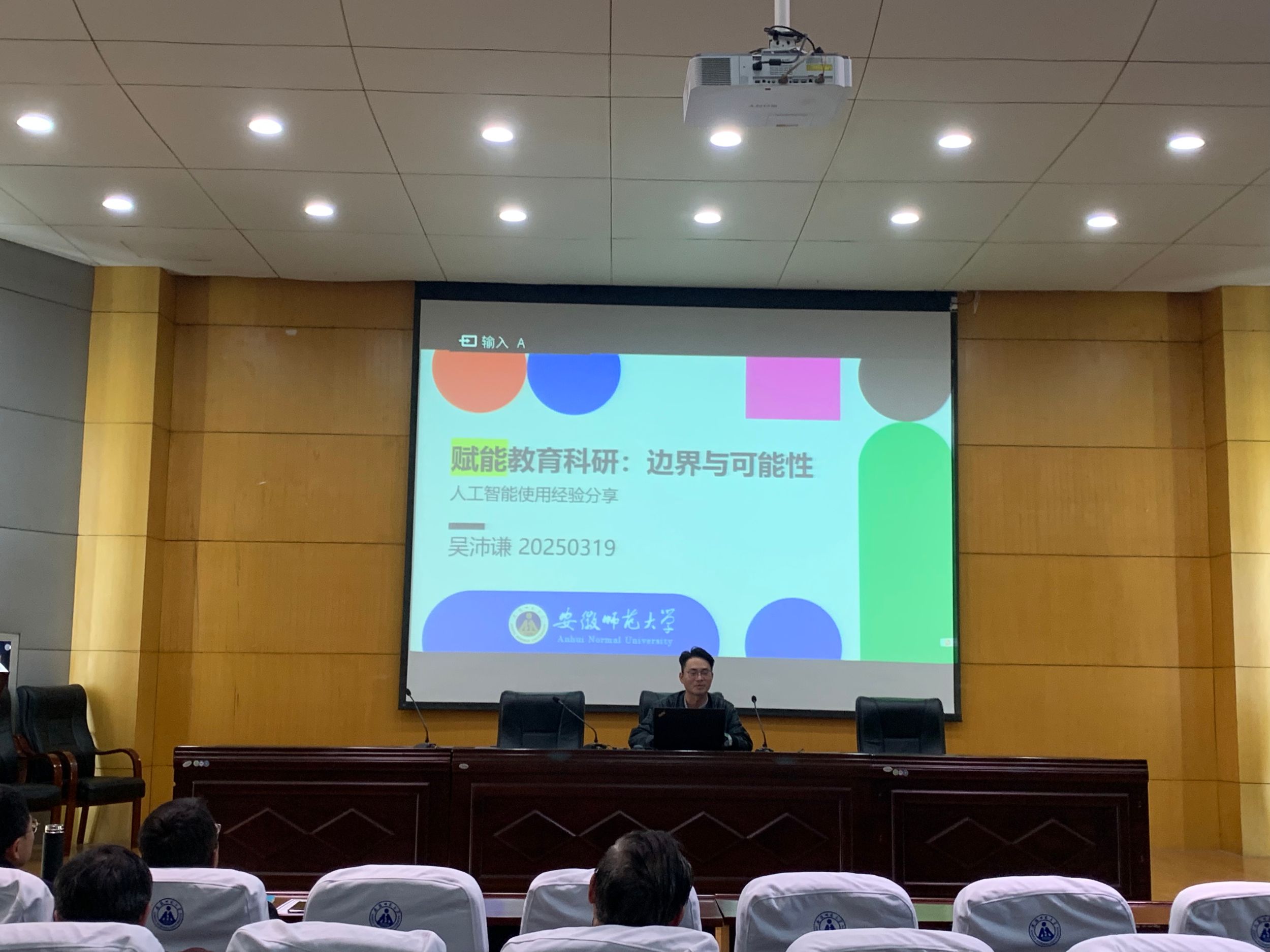 吴沛谦作题为《赋能教育科研:边界和可能性》的专题讲座。他从AI在科研与教学的现状和潜力、AI应用的禁区和伦理考量、科研赋能三步法、教学增效工具箱以及AI应用避坑指南五个方面详细介绍了AI应用中,赋能教育科研的边界和可能性,以及在使用过程中会遇到的一些问题和注意事项。