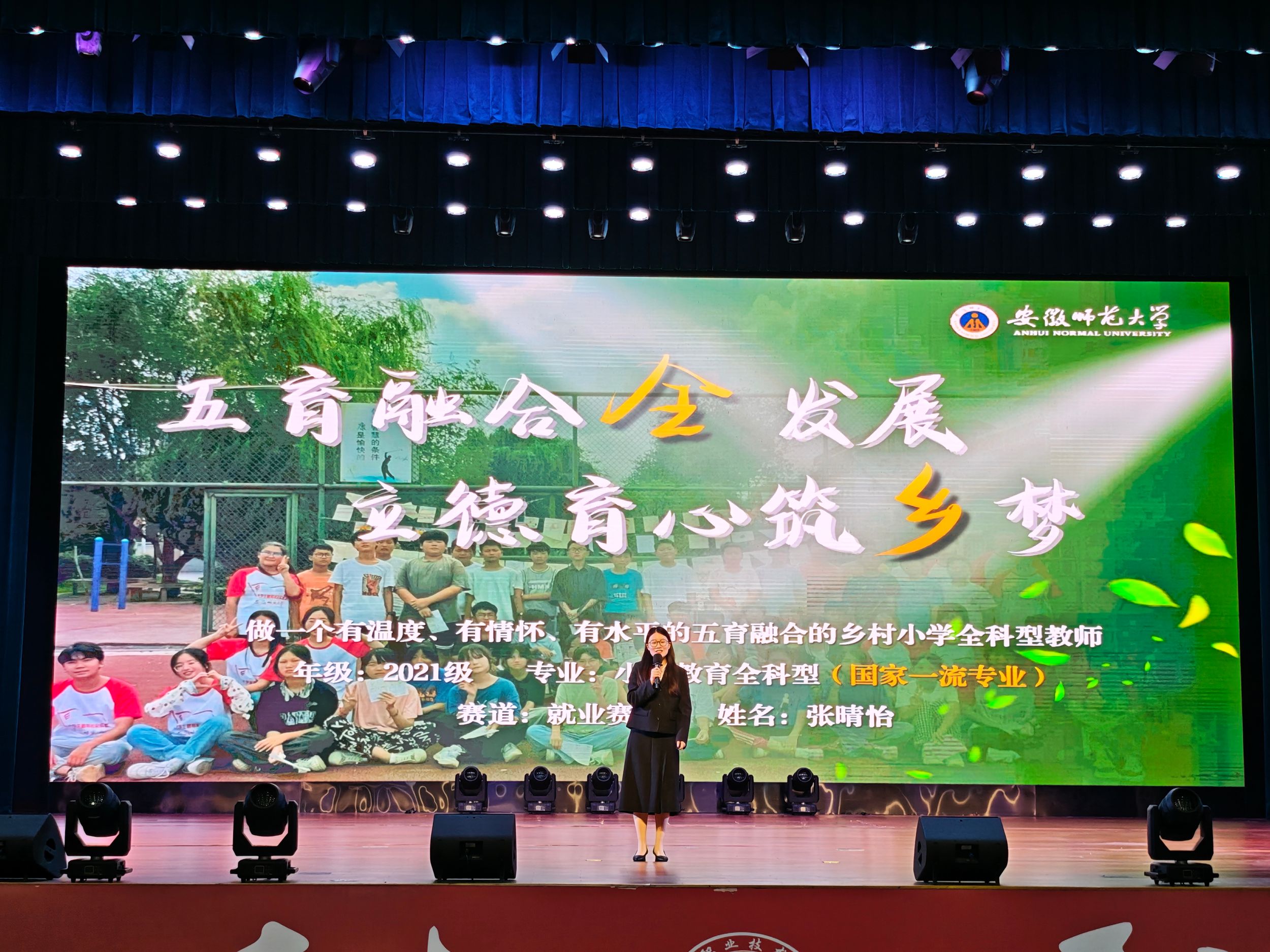 回望过去,张晴怡十分感谢师大提供的脚踏实地的奋斗热土与仰望星空的宇宙苍穹。学校“厚德、重教、博学、笃行”的校训,以及学院“学思并重,知行合一”的院训是她过去四年的求学底色,也是她未来拔节成长的学术理想。作为一名小学教育定向培养师范生,她将在不久的九月走上讲台,秉承着教育家精神,努力争做“四有好老师”,为安徽省基础教育事业发展贡献自己的青春力量。