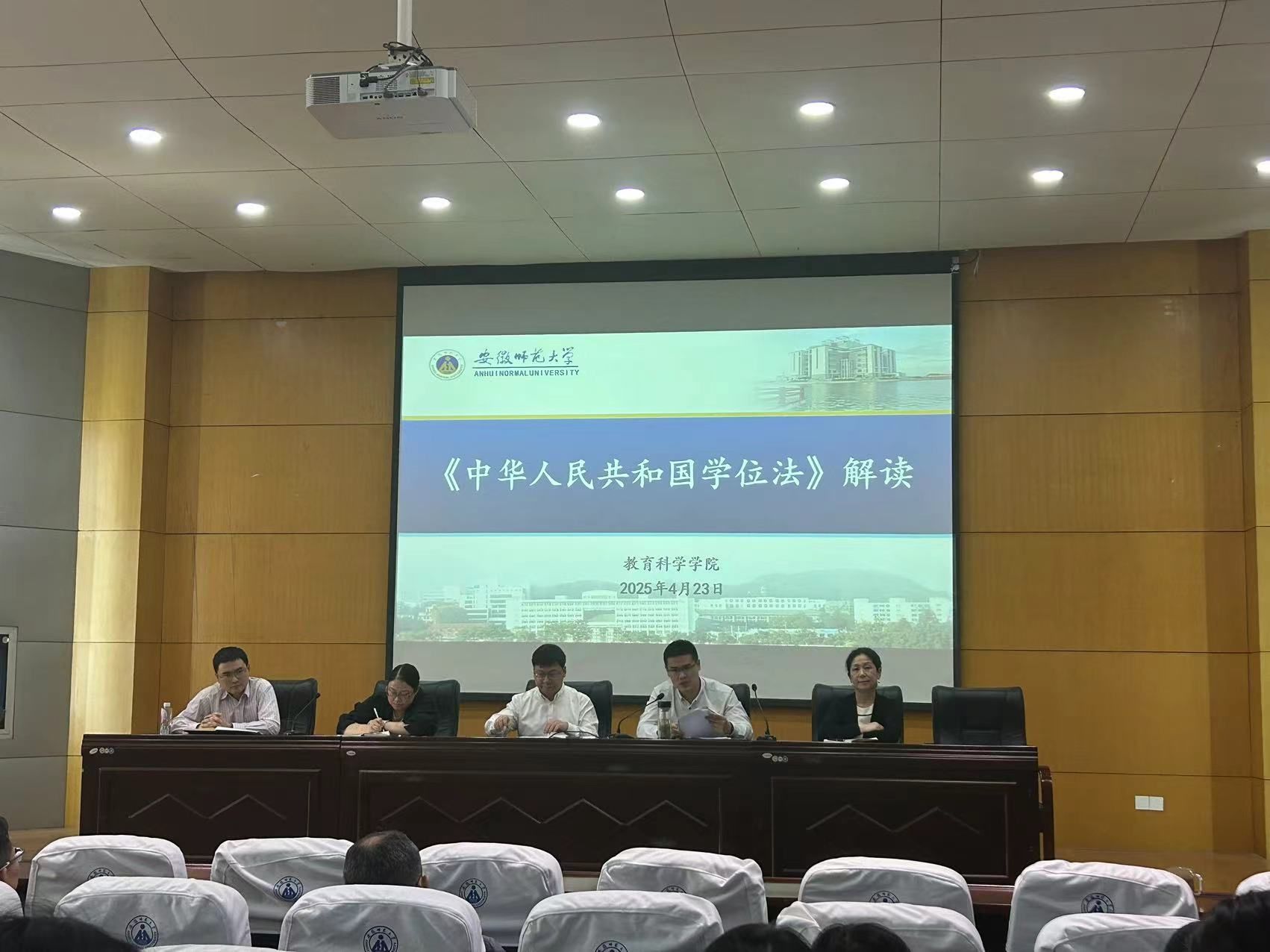院长吴文涛针对《中华人民共和国学位法》进行了解读,重点突出学术学位和专业学位的区别,同时针对性提出提升、加强导师管理和培养的相关建议。