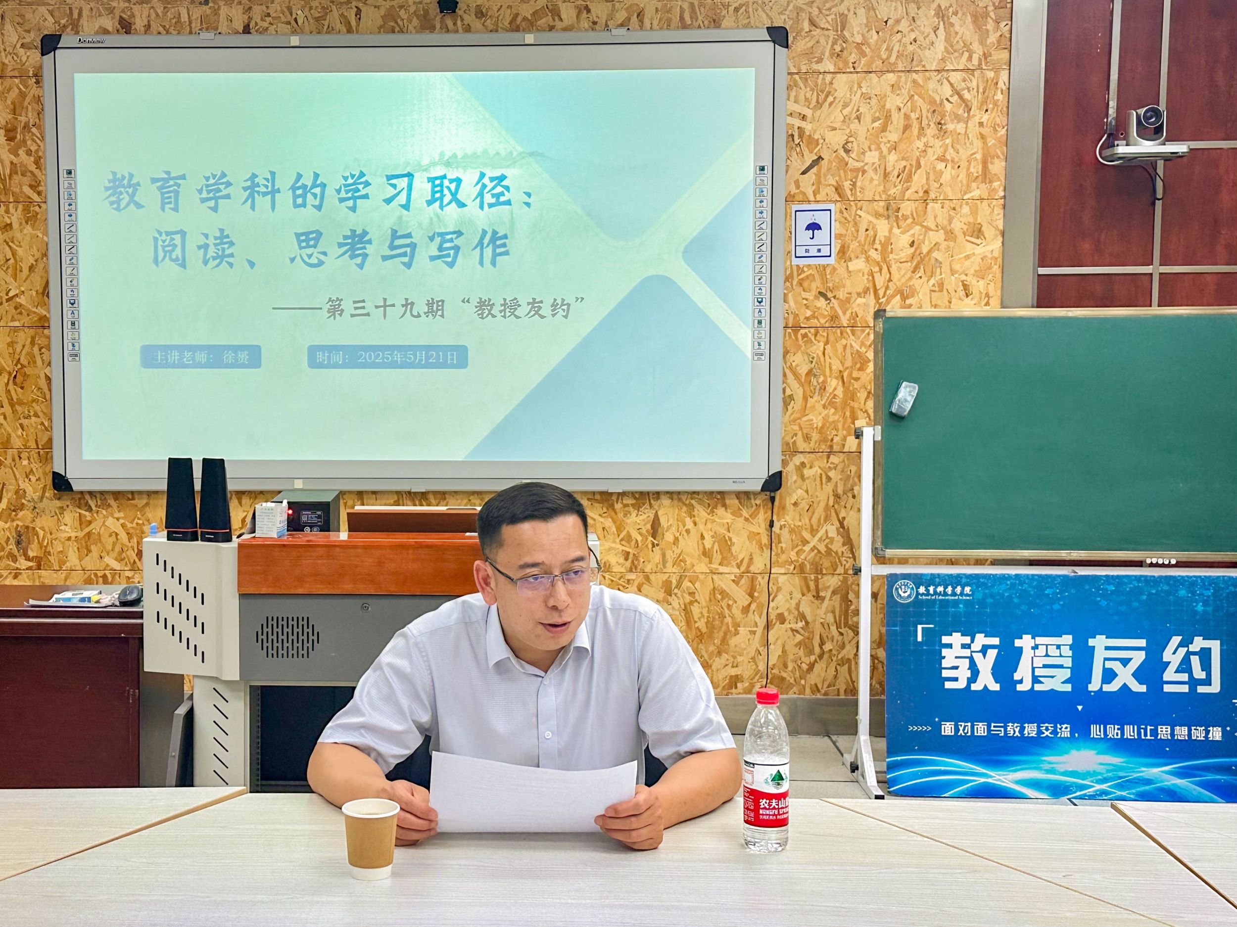 2025年5月21日晚,365英国上市官网在田家炳教育书院8502教室开展第三十九期“教授友约”活动。本次活动邀请徐赟副教授为同学们进行“教育学科的学习取径:阅读、思考与写作”主题分享。