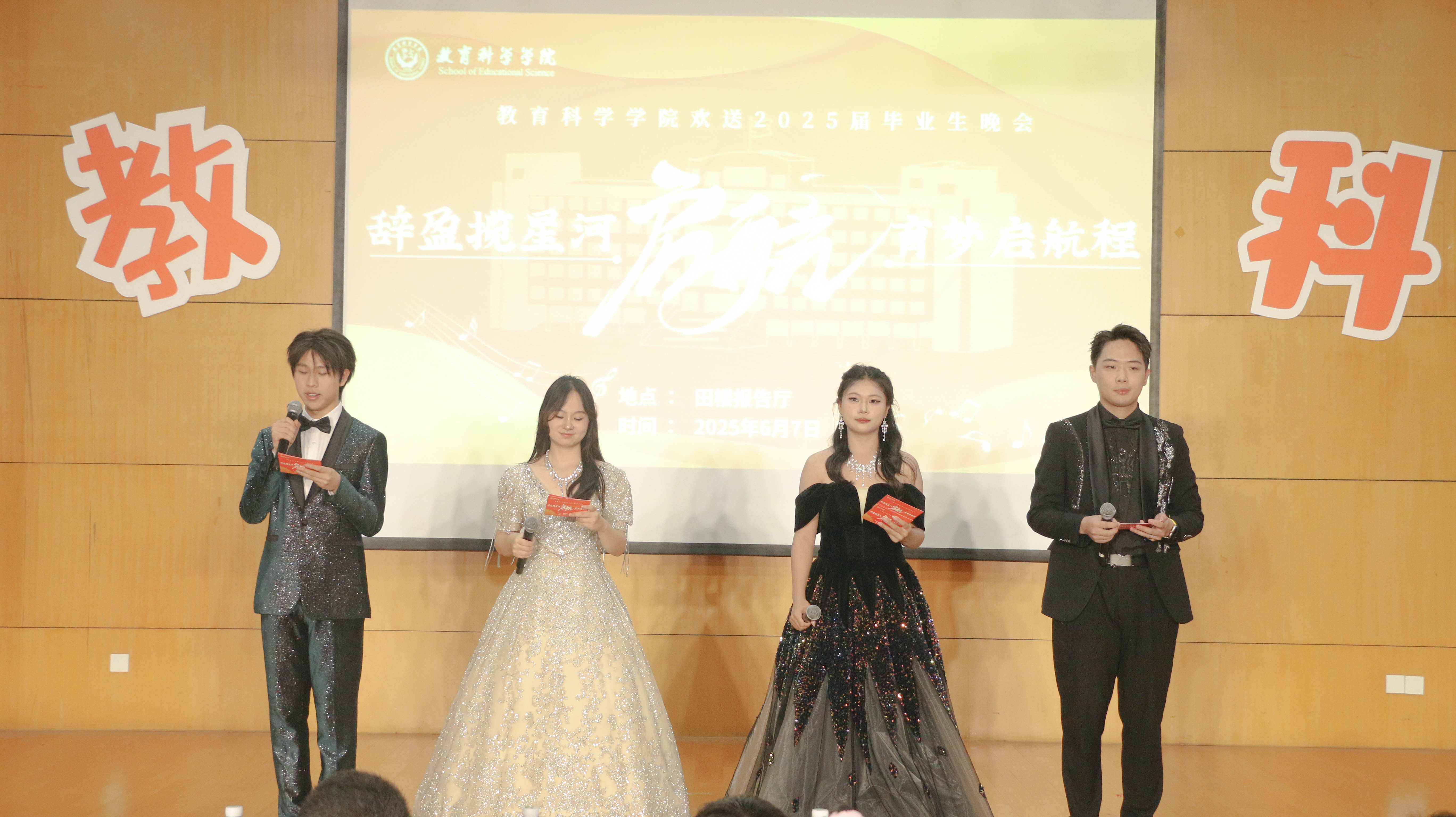 镌刻青春记忆,珍藏温柔岁月。为欢送2025届毕业生,365英国上市官网于6月7日晚在赭山校区田楼报告厅举办“辞盈揽星河,育梦启航程”毕业生晚会。院党委书记许国飞、党委副书记杜凤、副院长何海燕、各专业教师以及全体辅导员莅临现场观看晚会。