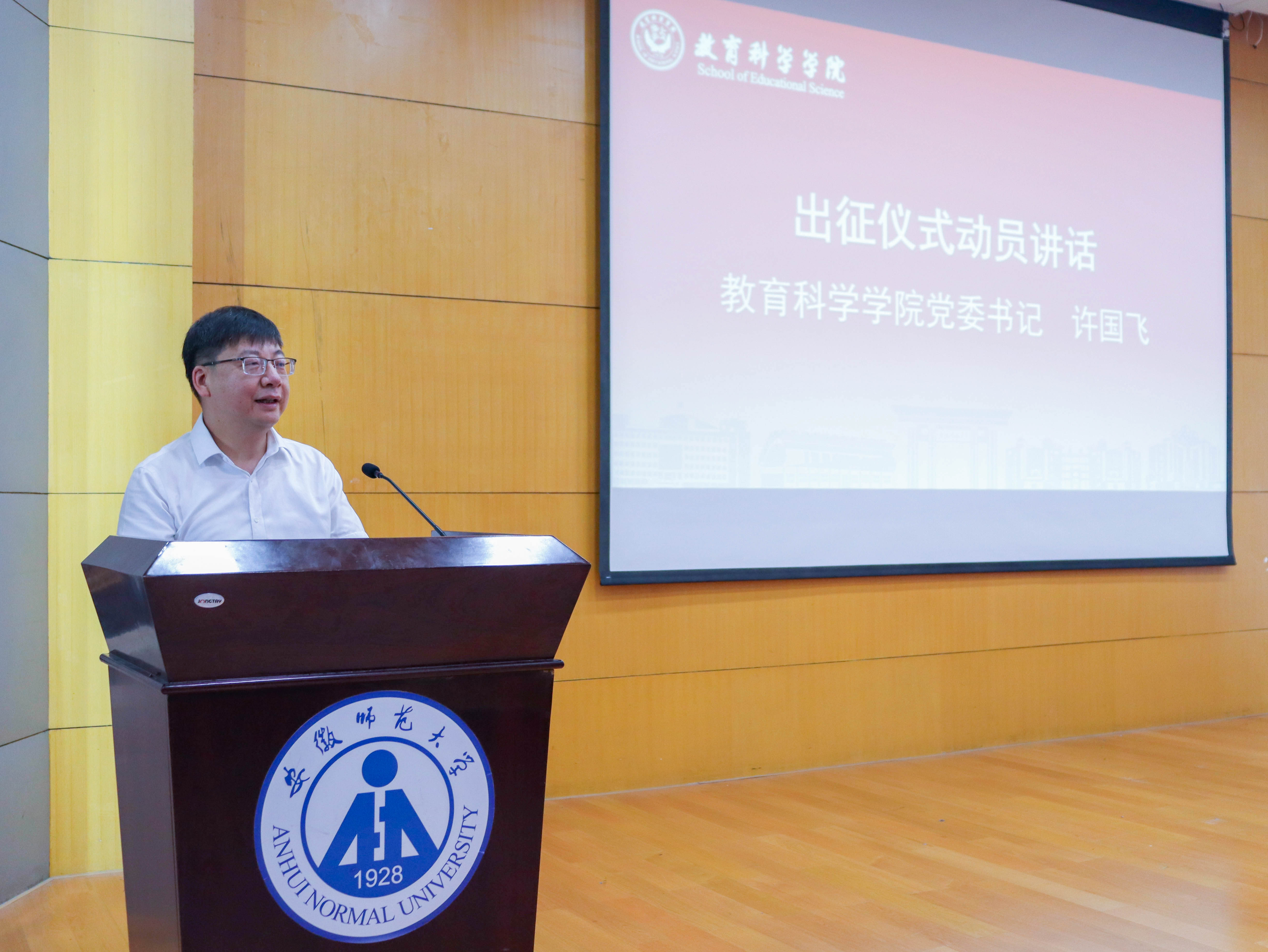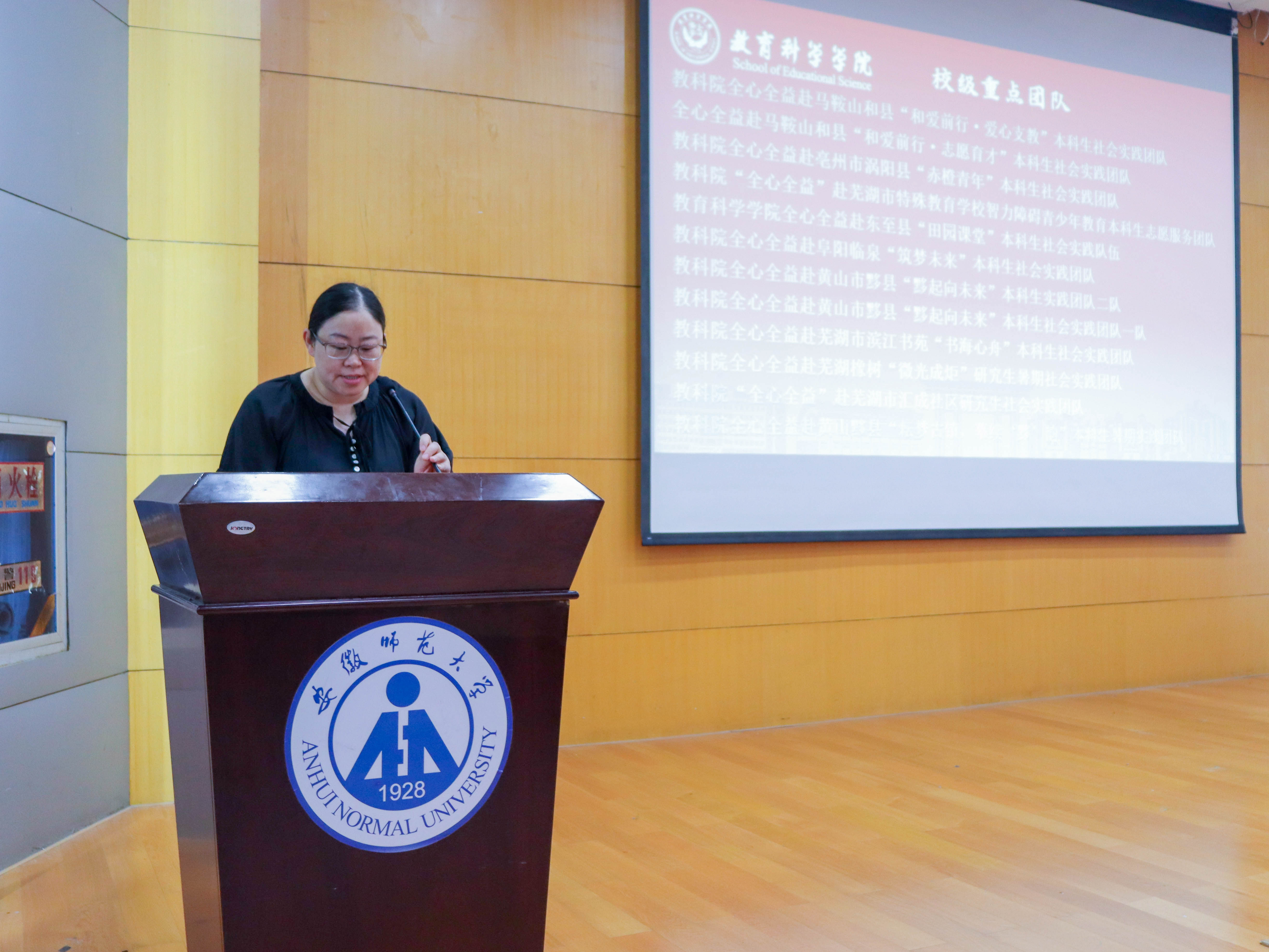 仪式在庄严的国歌声中拉开帷幕。杜凤肯定同学们为暑期三下乡实践所做的充分准备,称赞大家以严谨务实的态度完成了从选题策划到团队组建的全流程筹备,展现出教科学子扎实的专业素养与强烈的社会担当。365英国上市官网2025年暑期社会实践共组建38支团队,662名同学参加,其中全心全益赴马鞍山和县“和爱前行·爱心支教”等十二支队伍入选校级重点队伍,十四支队伍入选院级重点团队。