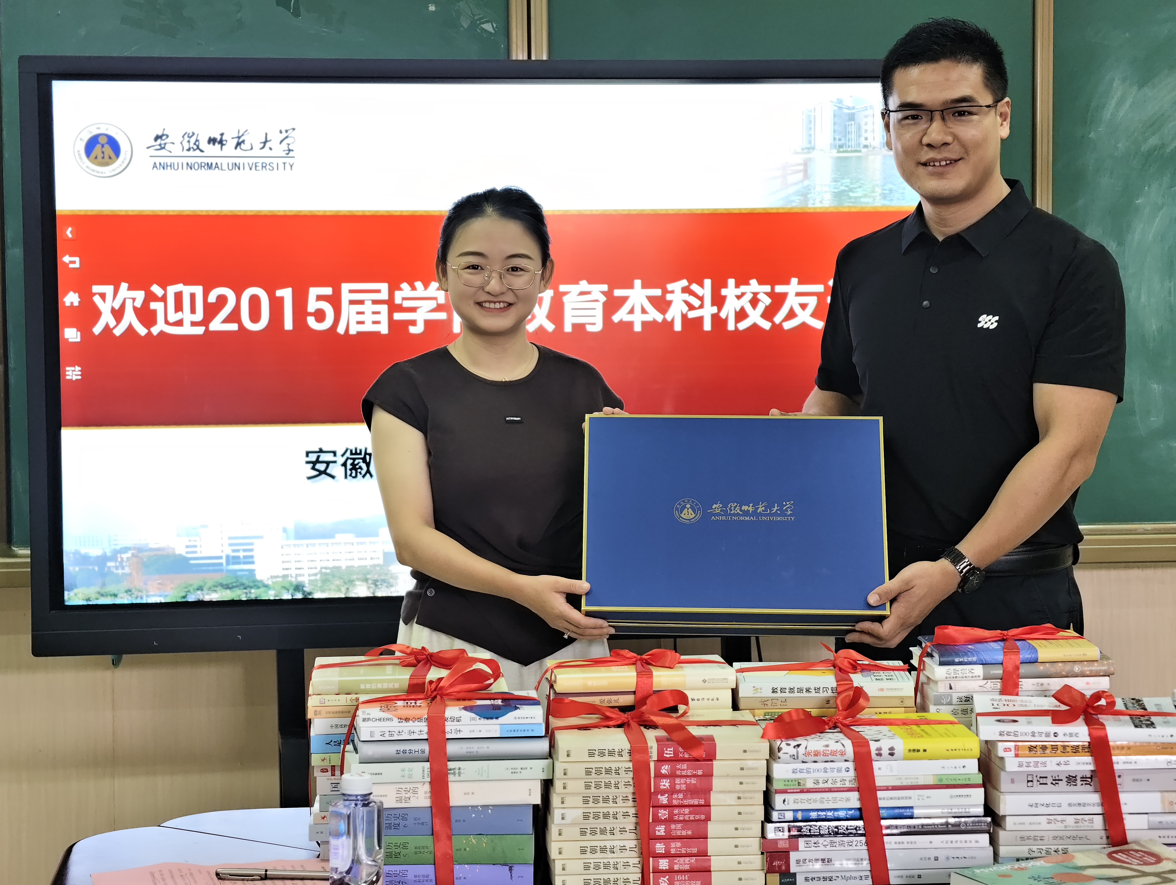 校友们纷纷向老师们汇报了自己的成长历程和工作近况,他们表示,自己所取得的每一个成绩都离不开母校的熏陶和老师的教诲。为回馈母校,校友们向学院捐赠了101册图书,助力学院发展与学弟学妹成长。学院也精心准备了纪念品,表达对校友的祝福。会后,校友们与学院领导、老师合影留念,定格下这难忘的瞬间。